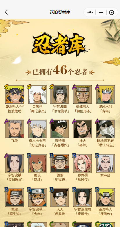 PX_2319584-3S忍/8A忍/战力131W/V2/区服3583 【S忍者】,宇智波佐助「漩涡鸣人」,自来也「舞之豪杰」,宇智波鼬「须佐能乎」, 【A忍者】,机械鸣人「初始形态」,迈特凯「青春爆炸」,宇智波鼬「夏日限定」,旗木卡卡西「幻之真容」,神农「羁绊」,桃地再不斩「秽土转生」,波风水门「青年」,飞段,