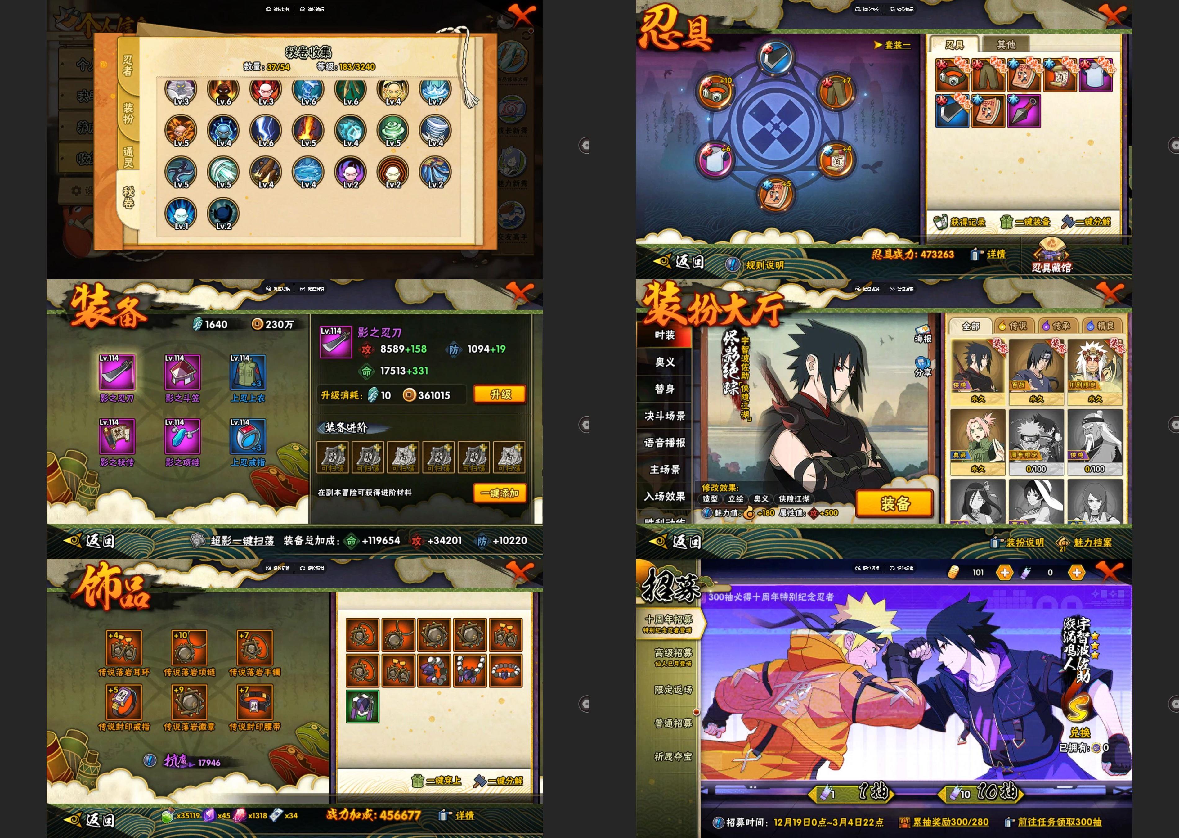 【A忍者】,纲手「妖怪奇谭」,迈特凯「青春爆炸」,宇智波佐助「侠隐江湖」,旗木卡卡西「幻之真容」,蝎「绯流琥」,宇智波泉奈,宇智波带土「漂泊浪客」,桃地再不斩「秽土转生」,波风水门「青年」,千代「近松十人卫」,飞段,干柿鬼鲛,宇智波鼬,