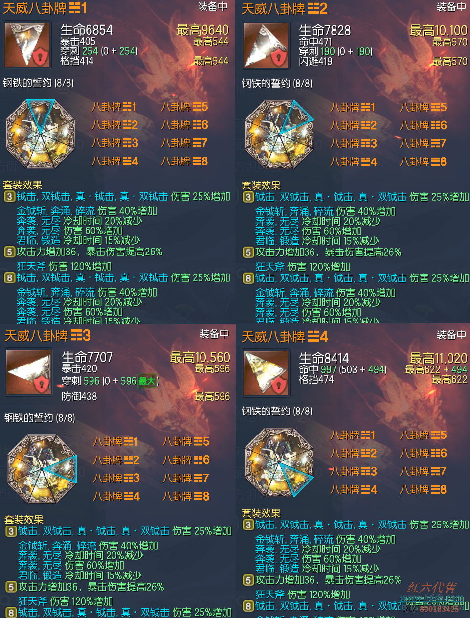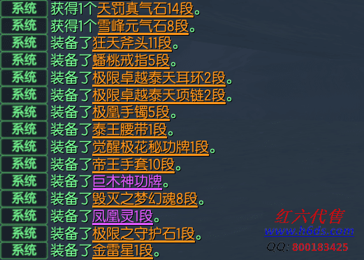 12608,铁傀王力士,侠义团57段,天罚真气石14段,雪峰元气石8段,狂天斧头11段,蟠桃戒指5段,极限卓越泰天耳环2段,极限卓越泰天项链2段,极凰手镯5段,泰王腰带1段,帝王手套10段,觉醒极花秘功牌1段,巨木神功牌,毁灭之梦幻魂8段,凤凰灵1段,极限之守护石1段,金雷星1段,衣服23件,(一手号,起手1400稳定720,金币材料不算,不包手续费)1000R