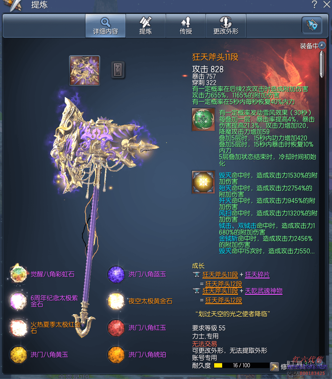 J15399,无日峰力士,侠义团67段,天罚真气石11段,雪峰元气石8段,狂天斧