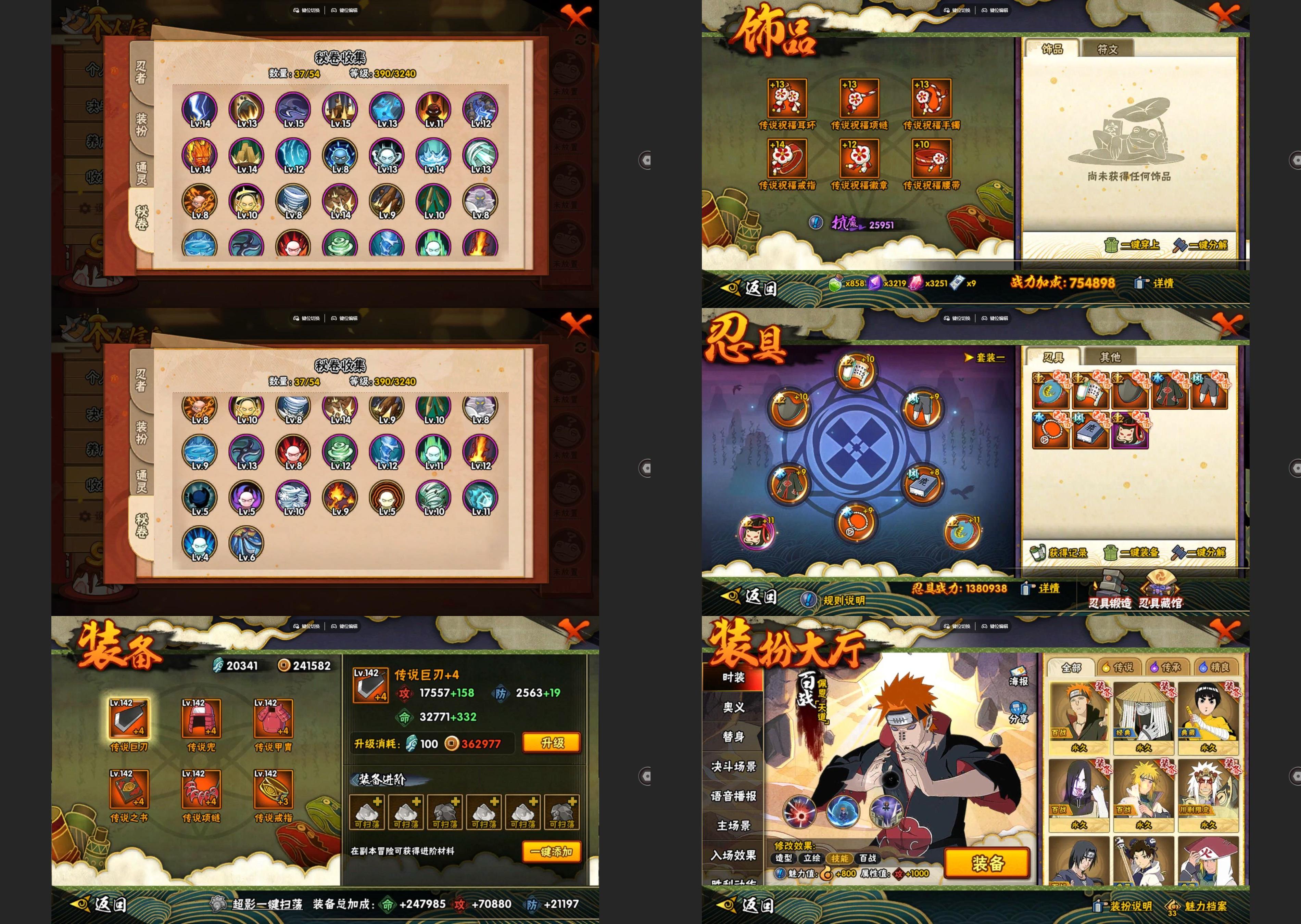 【A忍者】,大野木「侠隐江湖」,纲手「妖怪奇谭」,迈特凯「青春爆炸」,长十郎「六代目水影」,日向宁次「忍界大战」,宇智波泉奈,长门「青年」,艾「青年」,达鲁伊「五代目雷影」,波风水门「青年」,宇智波佐助「须佐能乎」,照美冥「五代目水影」,宇智波佐助「万花筒写轮眼」,飞段「死司凭血」,飞段,迪达拉,我爱罗「疾风传」,蝎,干柿鬼鲛,宇智波鼬,猿飞阿斯玛,迈特凯,