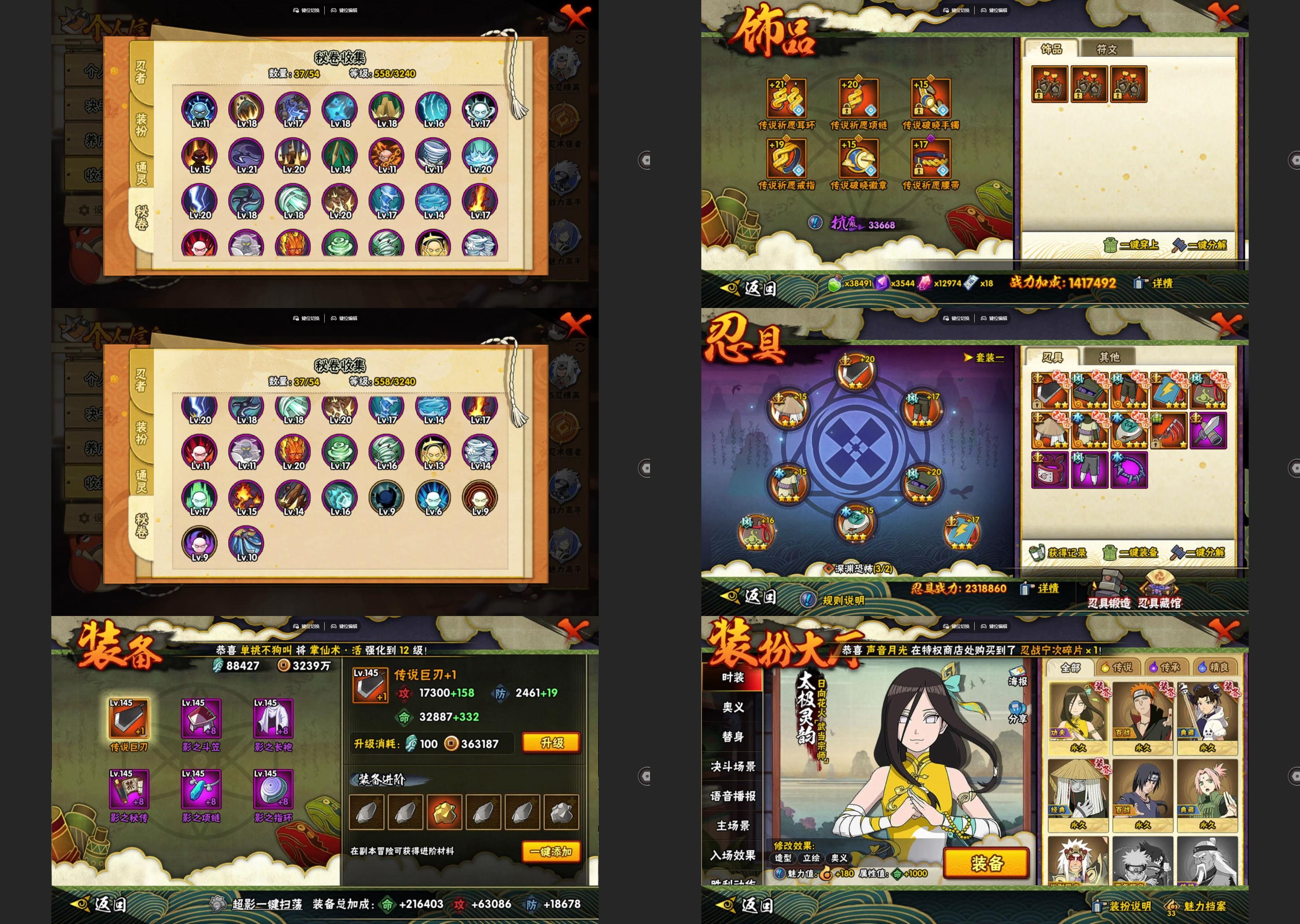 【A忍者】,大野木「侠隐江湖」,迈特凯「青春爆炸」,土台「忍界大战」,日向宁次「忍界大战」,宇智波鼬「夏日限定」,李洛克「忍界大战」,宇智波泉奈,桃地再不斩「秽土转生」,宇智波止水,千代「近松十人卫」,秋道丁次「忍界大战」,宇智波佐助「万花筒写轮眼」,志村团藏,飞段「死司凭血」,迪达拉,我爱罗「疾风传」,蝎,干柿鬼鲛,宇智波鼬,猿飞阿斯玛,迈特凯,