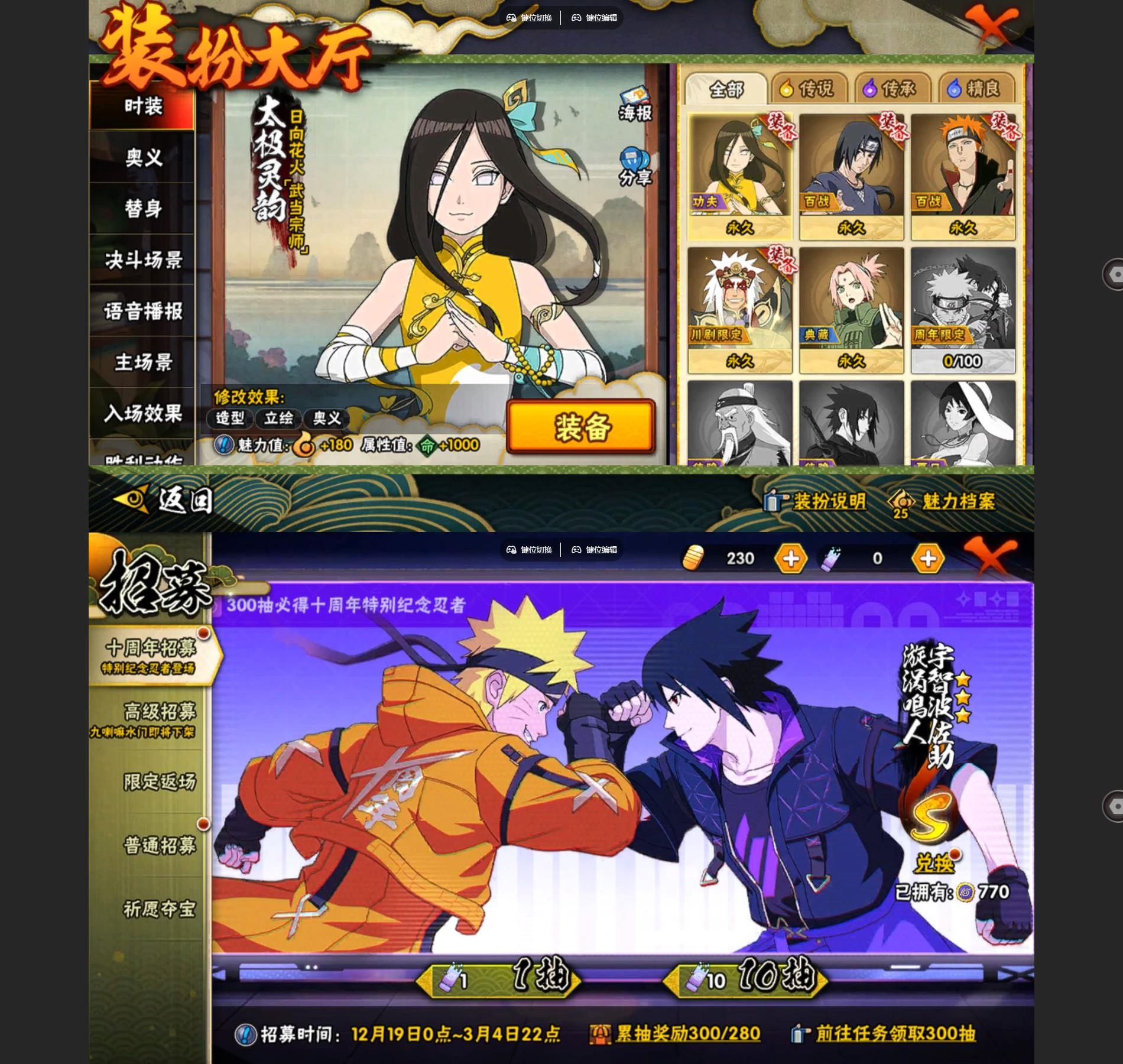 【A忍者】,大野木「侠隐江湖」,迈特凯「青春爆炸」,漩涡博人「桃式显现」,宇智波鼬「夏日限定」,旗木卡卡西「幻之真容」,宇智波泉奈,长门「青年」,艾「青年」,波风水门「青年」,宇智波佐助「须佐能乎」,千代「近松十人卫」,飞段,蝎,干柿鬼鲛,迈特凯,