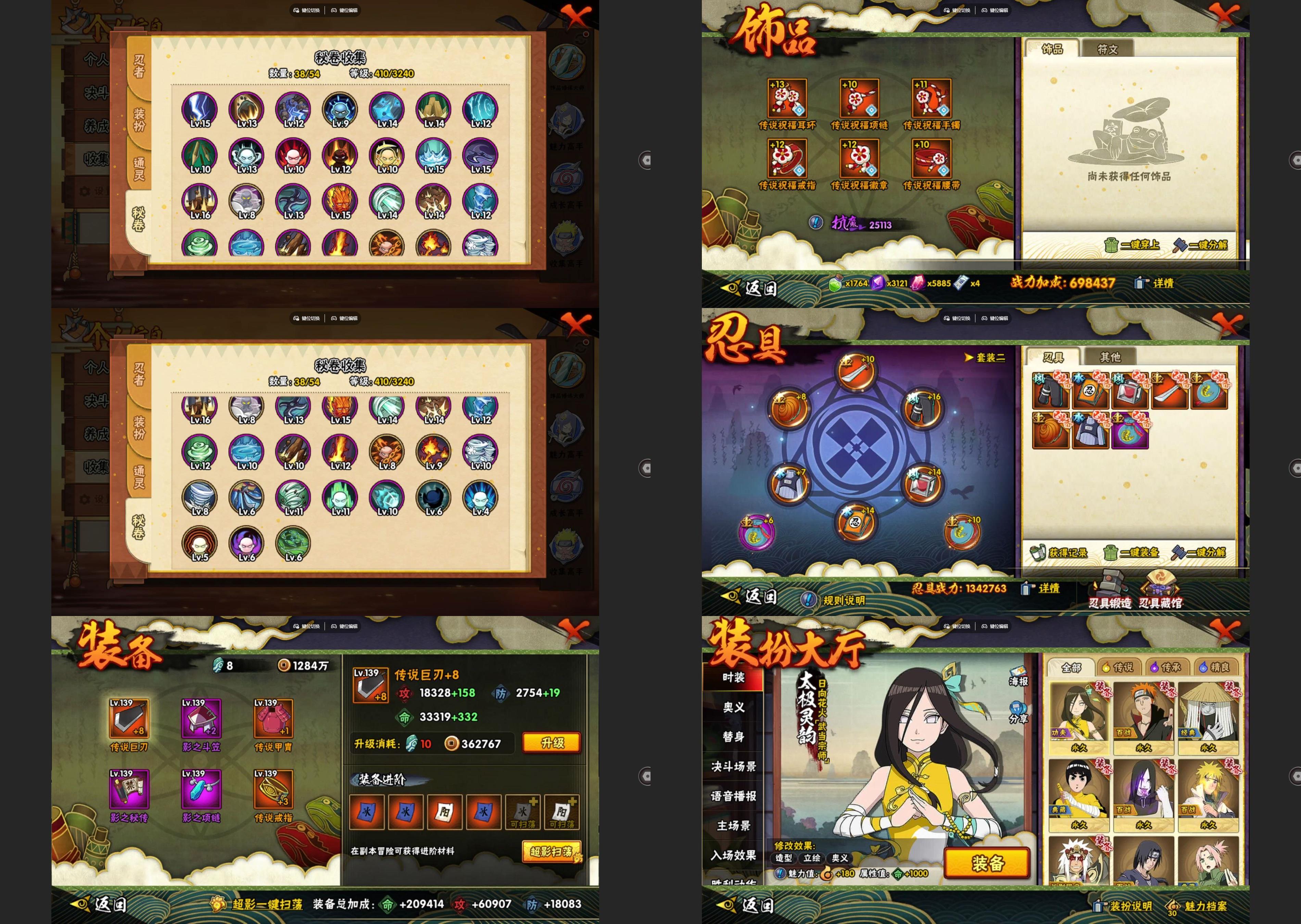 【A忍者】,大野木「侠隐江湖」,纲手「妖怪奇谭」,迈特凯「青春爆炸」,长十郎「六代目水影」,旗木卡卡西「幻之真容」,李洛克「忍界大战」,蝎「绯流琥」,宇智波泉奈,宇智波带土「漂泊浪客」,长门「青年」,艾「青年」,波风水门「青年」,宇智波止水「新春限定」,宇智波佐助「须佐能乎」,秋道丁次「忍界大战」,宇智波佐助「万花筒写轮眼」,角都「地怨虞」,飞段「死司凭血」,飞段,迪达拉,我爱罗「疾风传」,蝎,干柿鬼鲛,宇智波鼬,猿飞阿斯玛,迈特凯,