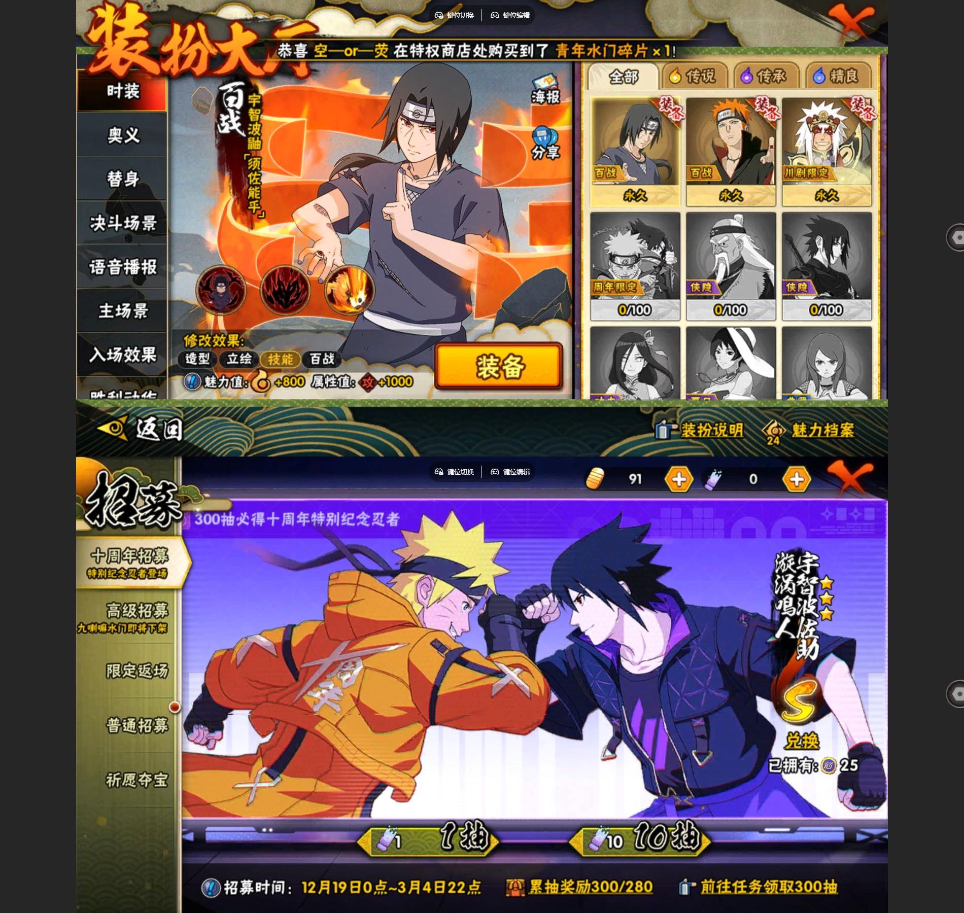 【S忍者】,宇智波佐助「漩涡鸣人」,宇智波止水「须佐能乎」,自来也「舞之豪杰」,旗木卡卡西「须佐能乎」,佩恩·天道「超」,宇智波鼬「须佐能乎」,佩恩「天道」,