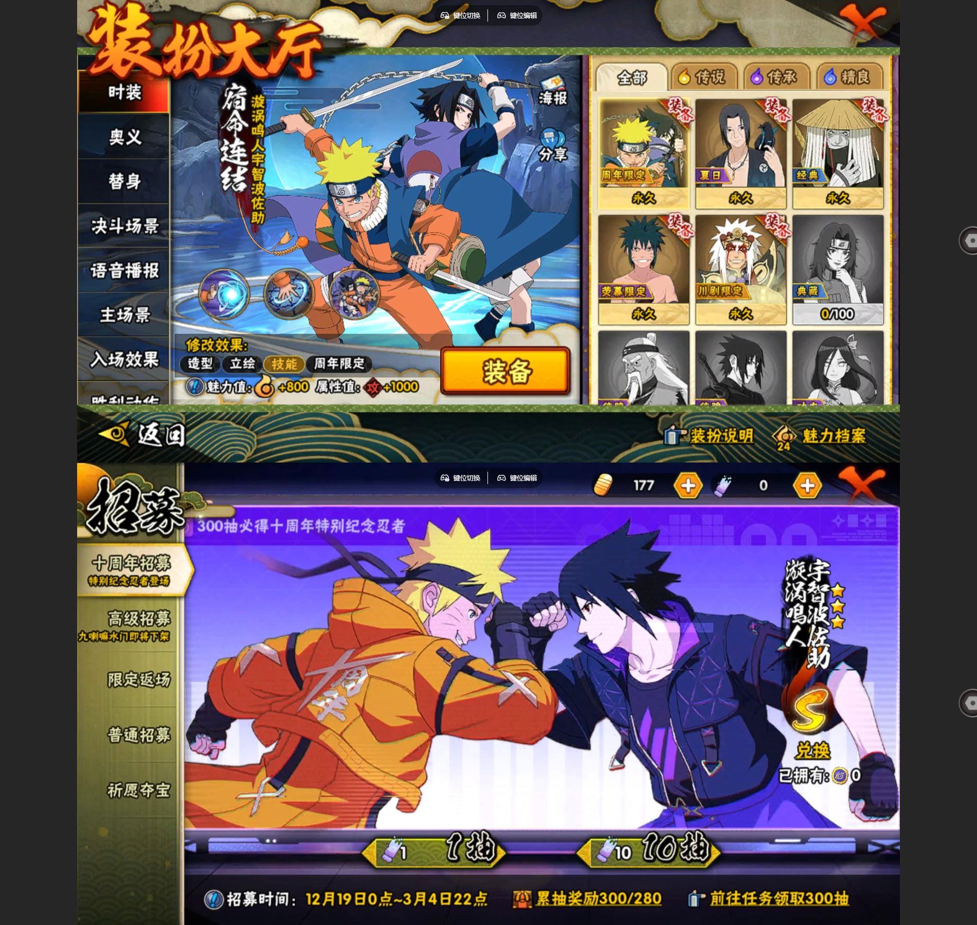 【A忍者】,机械鸣人「初始形态」,迈特凯「青春爆炸」,药师兜「侠隐江湖」,漩涡博人「桃式显现」,宇智波鼬「夏日限定」,旗木卡卡西「幻之真容」,不动,宇智波泉奈,神秘面具男「忍者之路」,波风水门「青年」,宇智波佐助「须佐能乎」,我爱罗「疾风传」,干柿鬼鲛,