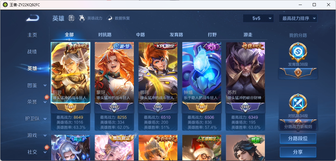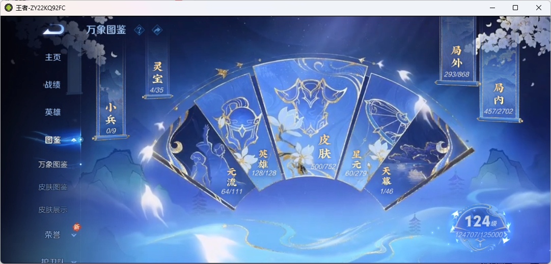 W10022【安卓区V8】可二次实名,英雄104,皮肤161,典藏:李白鸣剑.曳