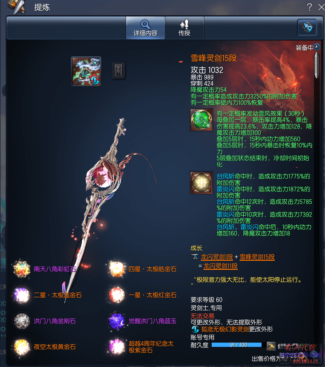 12659,无日峰灵剑士,侠义团83段,四星太极石,二星太极石,一星太极石,雪峰元气石15段,征伐真气石15段,雪峰灵剑15段,卓越蟠桃戒指3段,卓越雪峰耳环3段,卓越雪峰项链3段,极龙手镯6段神山腰带12段,齐天手套12段,觉醒邪花秘功牌8段,觉醒武扬神功牌8段,毁灭南天魂11段,黄龙灵15段,青天守护石3段,晨晖星15段,衣服85,《f12稳定2300,》7000R,不议价