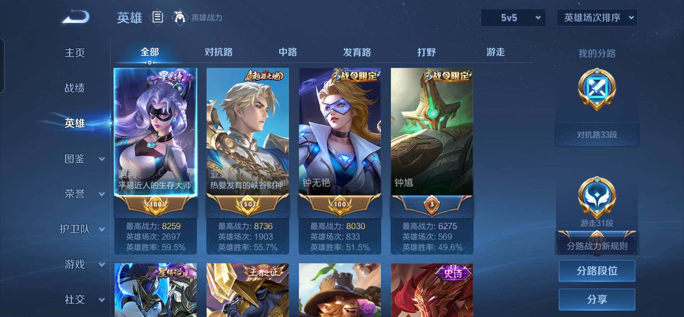 PX_2379551-Q-V8-至尊星耀I段位-127英雄-314皮肤-1典藏皮肤-1典藏英雄-6传说-80史诗