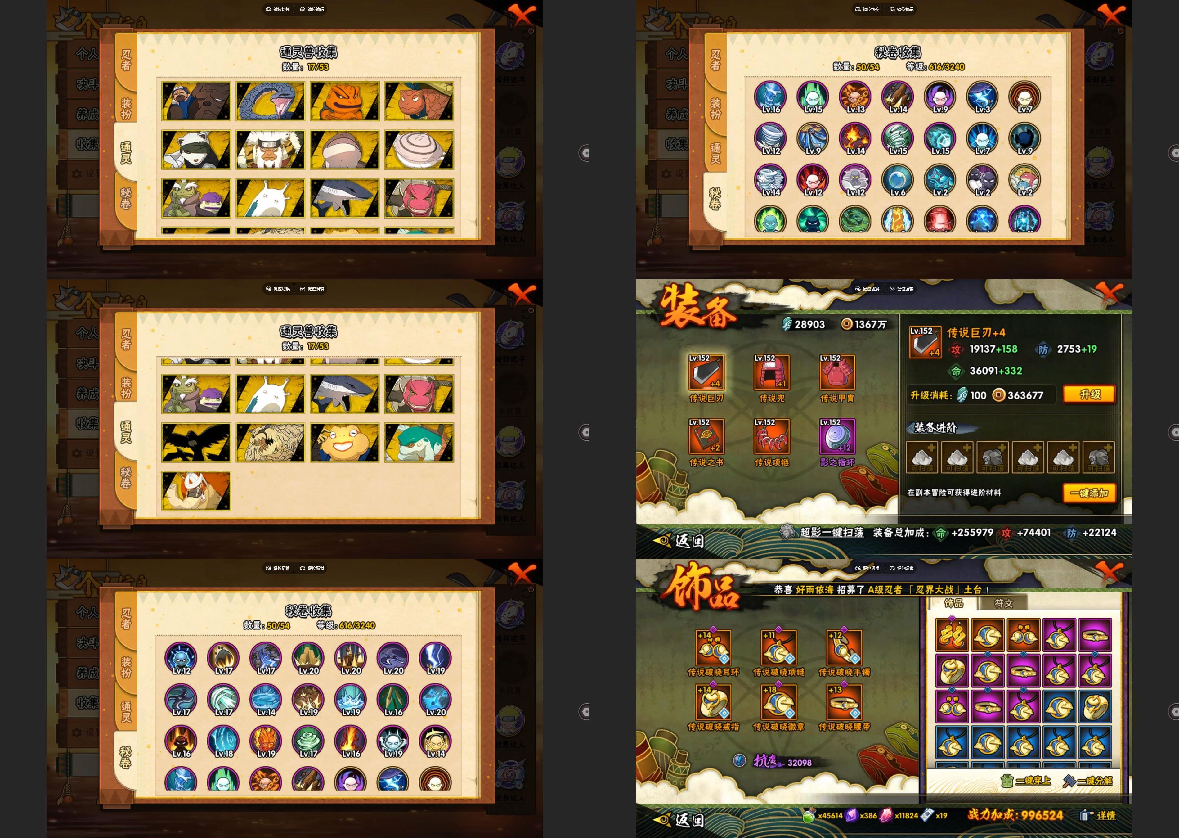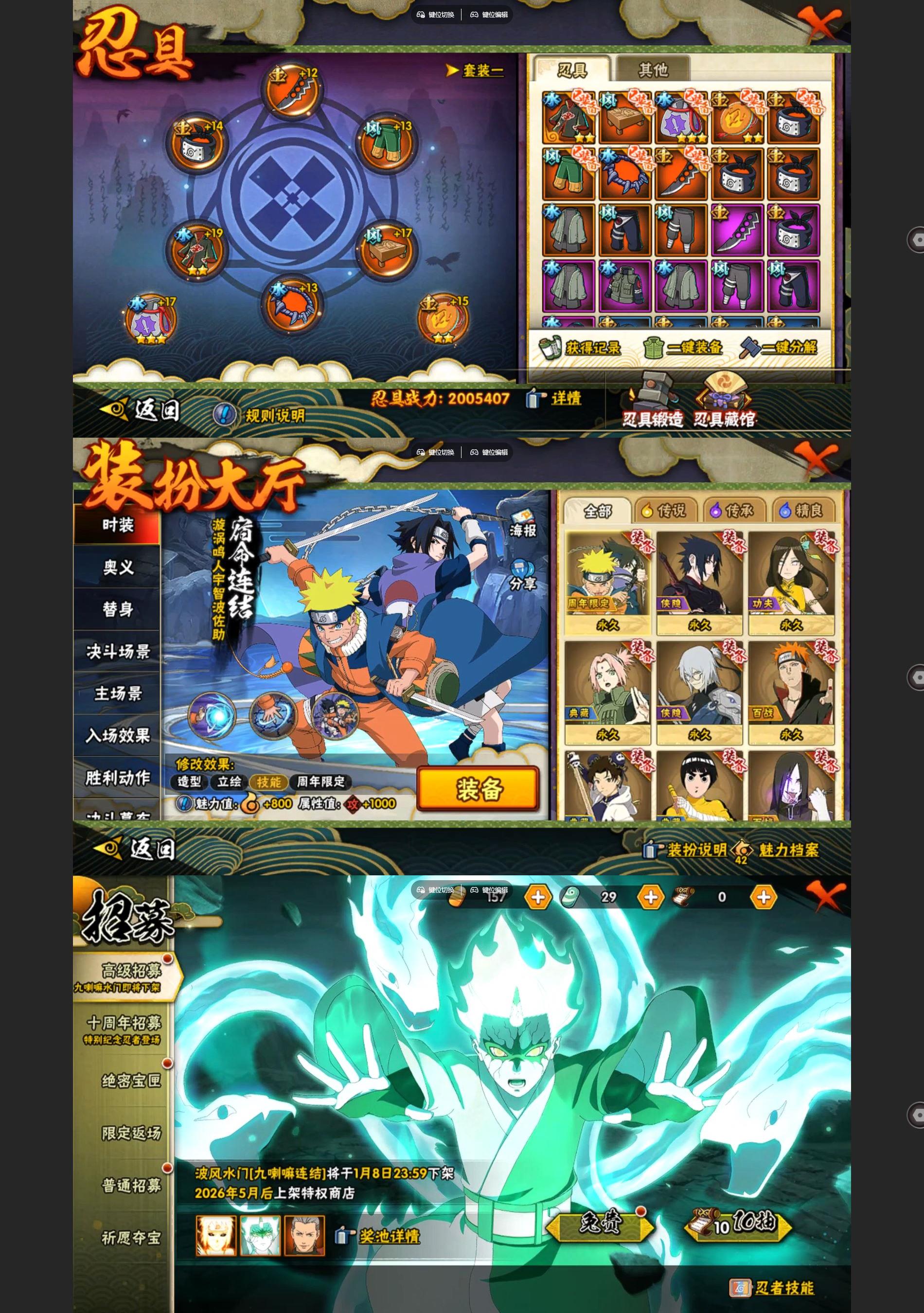 【A忍者】,机械鸣人「初始形态」,巳月「仙人模式」,迈特凯「青春爆炸」,宇智波佐助「侠隐江湖」,土台「忍界大战」,药师兜「侠隐江湖」,长十郎「六代目水影」,漩涡博人「桃式显现」,宇智波鼬「夏日限定」,旗木卡卡西「幻之真容」,李洛克「忍界大战」,不动,蝎「绯流琥」,宇智波泉奈,宇智波带土「漂泊浪客」,神农「羁绊」,桃地再不斩「秽土转生」,角都「秽土转生」,长门「青年」,佩恩·六道「漂泊浪客」,艾「青年」,达鲁伊「五代目雷影」,神秘面具男「忍者之路」,波风水门「青年」,千手扉间「漂泊武士」,宇智波佐助「须佐能乎」,迪达拉「秽土转生」,照美冥「夏日泳装」,漩涡鸣人「九尾查克拉」,千代「近松十人卫」,药师兜「半蛇斗篷」,我爱罗「忍界大战」,秋道丁次「忍界大战」,大蛇丸「晓」,春野樱「百豪」,波风水门「新春限定」,宇智波佐助「万花筒写轮眼」,达鲁伊,漩涡鸣人「仙人模式」,旗木卡卡西「万花筒写轮眼」,飞段「死司凭血」,飞段,迪达拉,我爱罗「疾风传」,蝎,干柿鬼鲛,宇智波鼬,猿飞阿斯玛,迈特凯,卑留呼「火之意志继承者」,桃地再不斩,