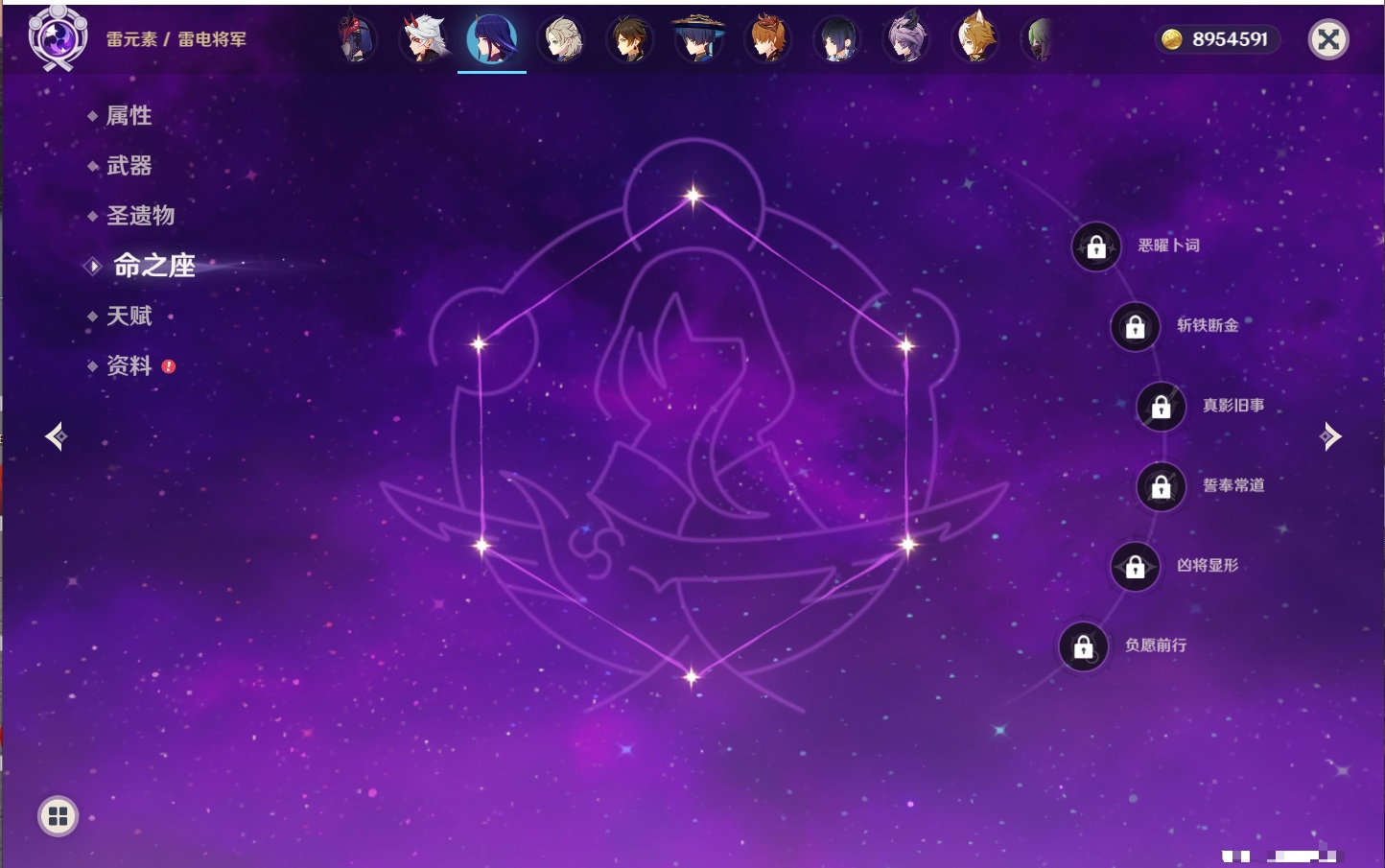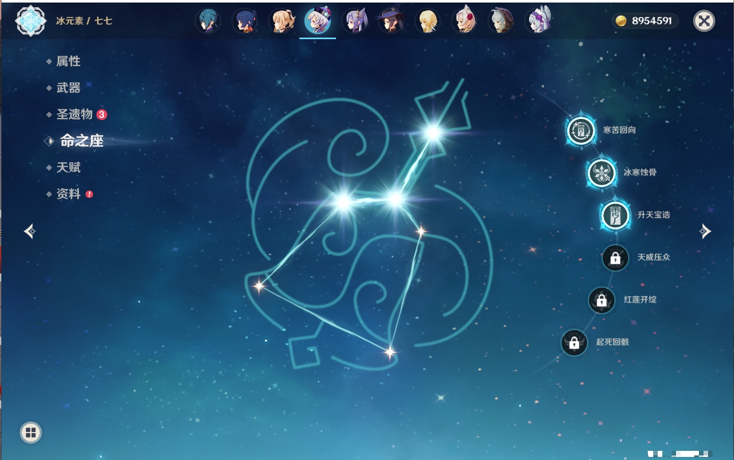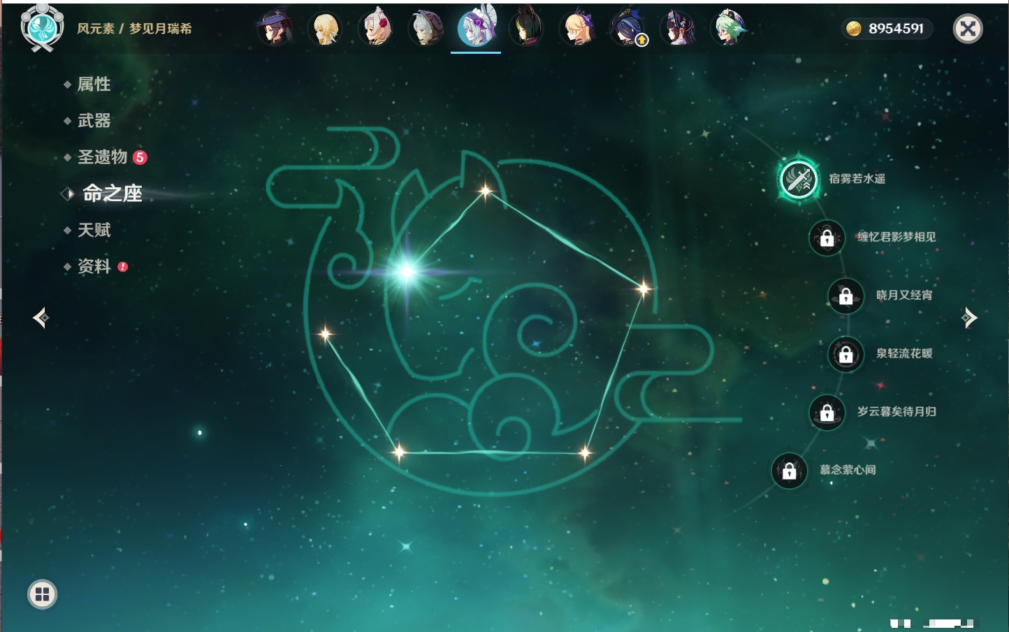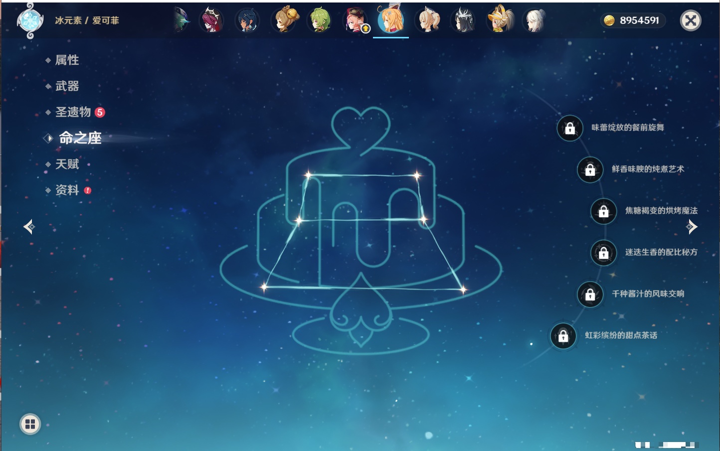 【23个五星角色】,满命八重神子,3命刻晴,3命七七,2命莫娜,2命迪卢克,1命枫原万叶,1命魈,1命琴,1命梦见月瑞希,0命克洛琳德,0命闲云,0命芙宁娜,0命流浪者,0命纳西妲,0命提纳里,0命夜兰,0命荒泷一斗,0命雷电将军,0命钟离,0命达达利亚,0命阿贝多,0命杜林,0命爱可菲,