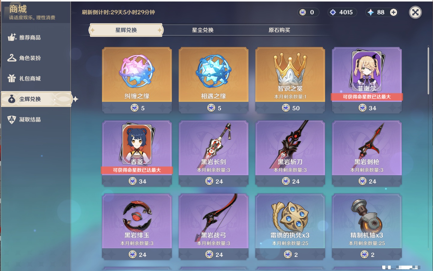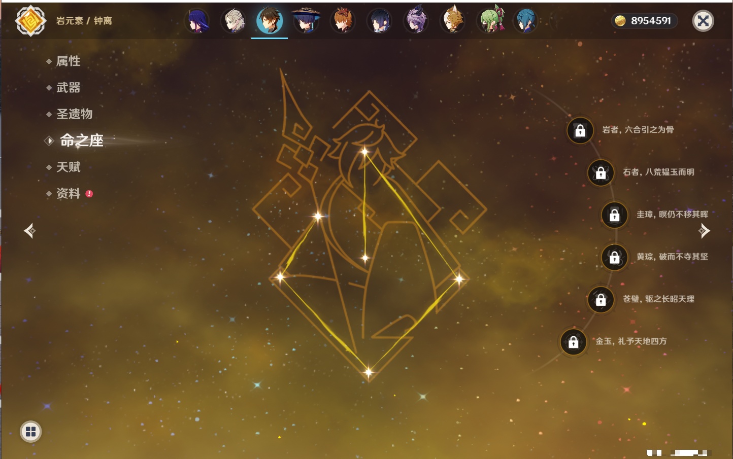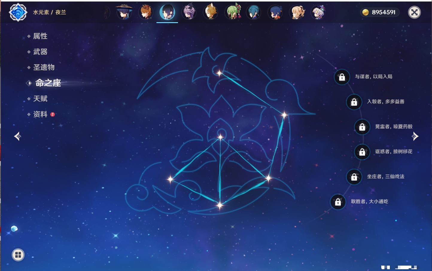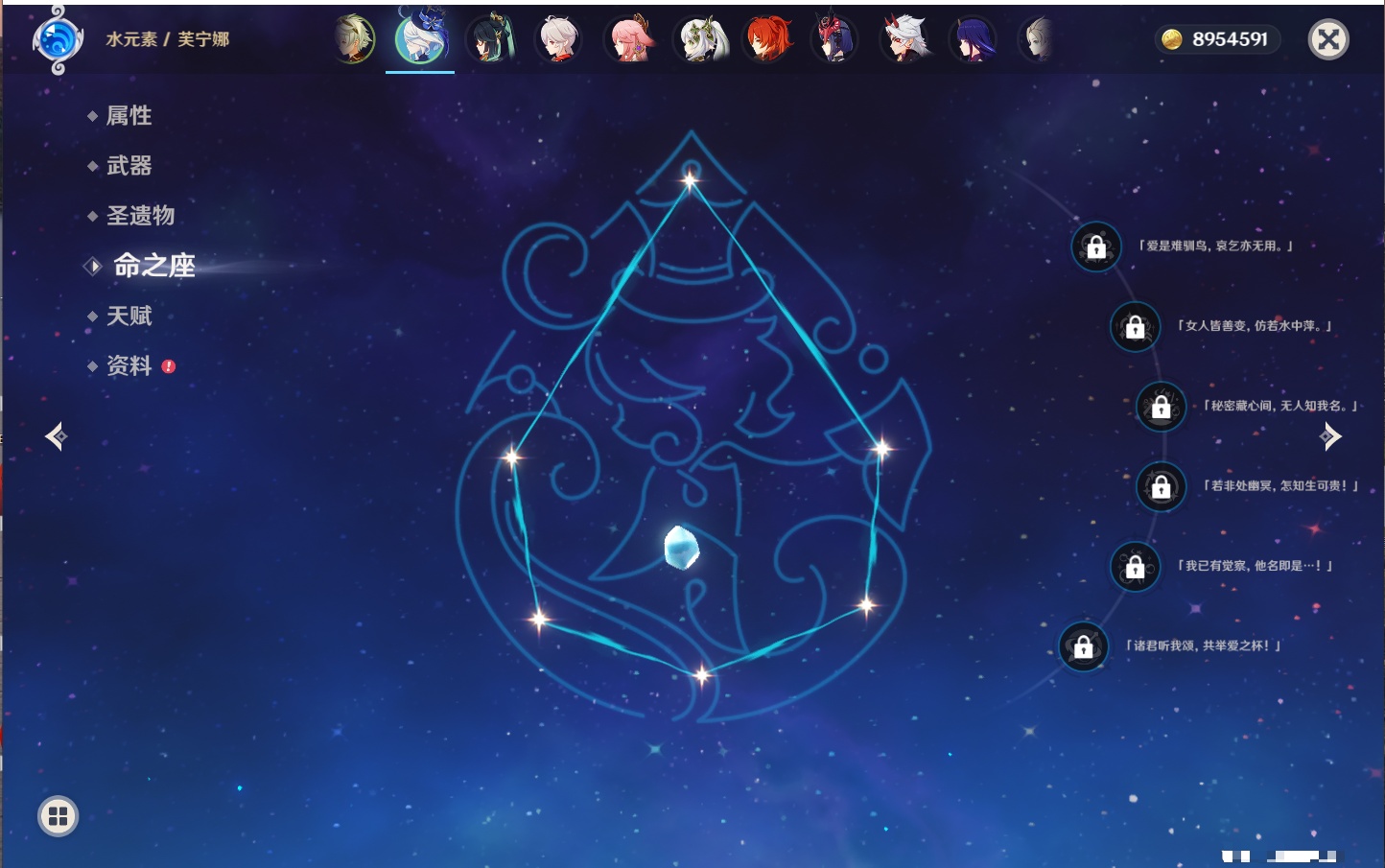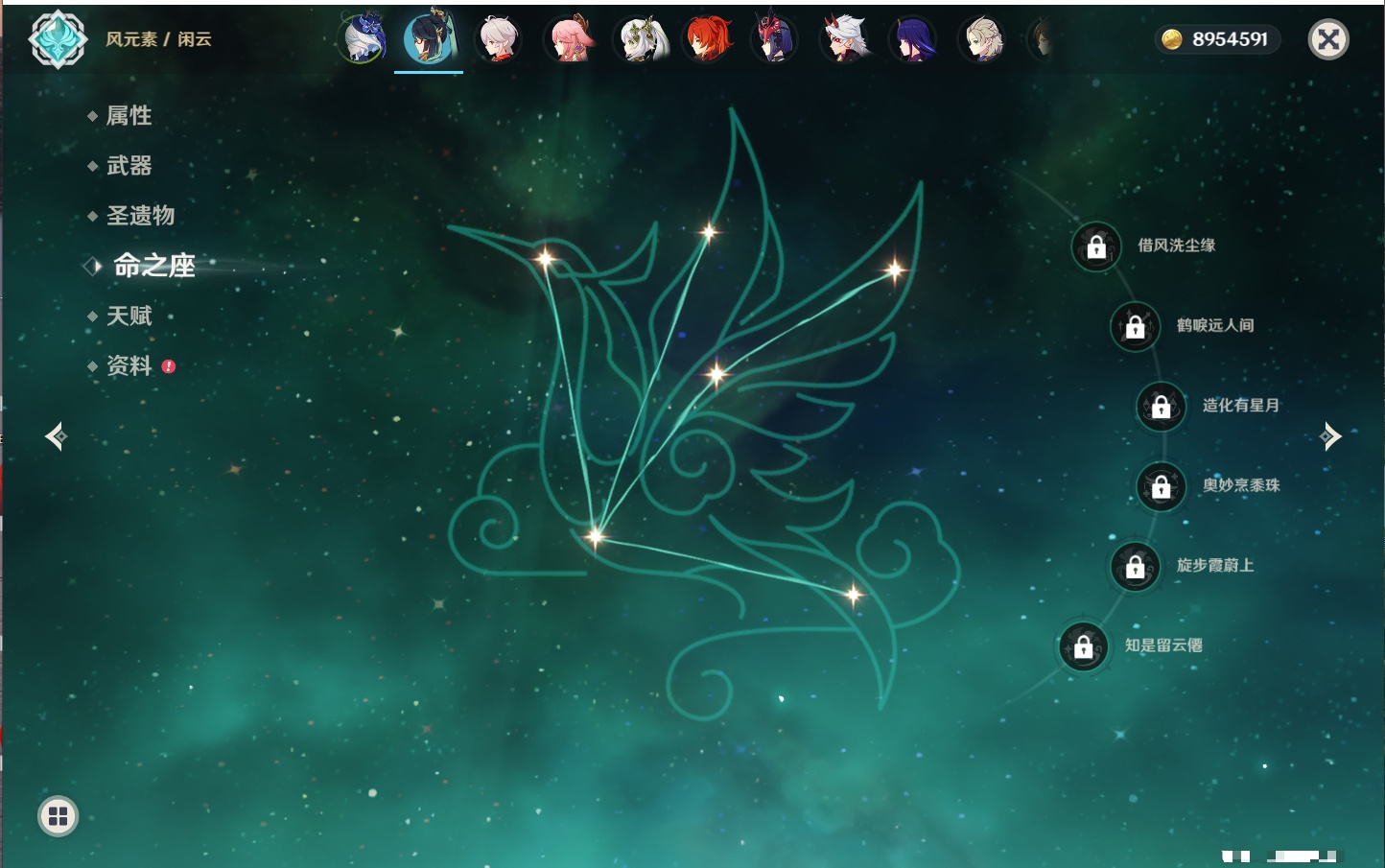 【23个五星角色】,满命八重神子,3命刻晴,3命七七,2命莫娜,2命迪卢克,1命枫原万叶,1命魈,1命琴,1命梦见月瑞希,0命克洛琳德,0命闲云,0命芙宁娜,0命流浪者,0命纳西妲,0命提纳里,0命夜兰,0命荒泷一斗,0命雷电将军,0命钟离,0命达达利亚,0命阿贝多,0命杜林,0命爱可菲,