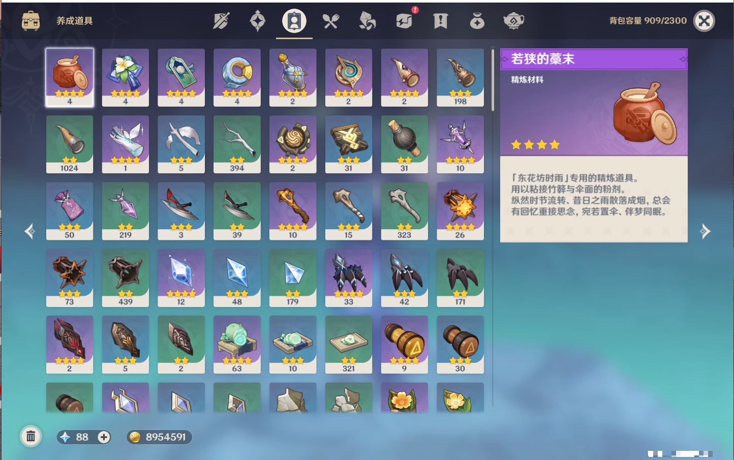PX_2365171-,邮箱不出售,不送TAP,冒险等级59级,女主,57黄,23个五星角色,13个五星武器,纠缠之源0--原石88--圣遗物446--【时装】,倩影游侠,帆影游风,雨化竹身,叶隐芳名,极夜真梦,纱中幽兰,琪花星烛,