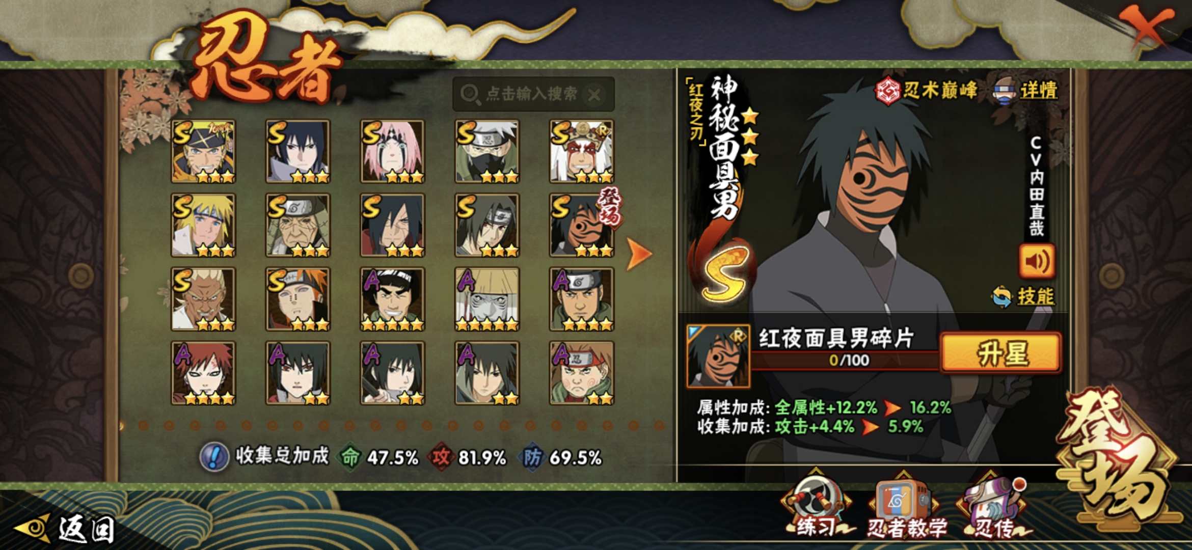 PX_2387170-者,26A忍者,15通灵】【安卓Q-3295区-141级-V7-694万战力】【S级】佩恩「天道」,宇智波斑「秽土转生·解」,猿飞日斩「秽土转生」,宇智波佐助「永恒万花筒」,旗木卡卡西「须佐能乎」,春野樱「忍界大战」,漩涡鸣人·宇智波佐助,自来也「舞之豪杰」,艾「忍界大战」,神秘面具男「红夜之刃」,波风水门,宇智波鼬「须佐能乎」【A级】宇智波鼬「夏日限定」,我爱罗「疾风传」,长十郎「六代
