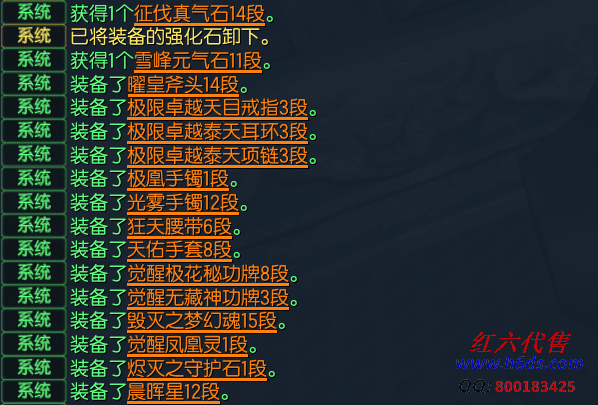 12675,无日峰力士,侠义团72段,三星太极石X1,征伐真气石14段,雪峰元气石11段,曜皇斧头14段,极限卓越天目戒指3段,极限卓越泰天耳环3段,极限卓越泰天项链3段,极凰手镯1段,光雾手镯12段,狂天腰带6段,天佑手套8段,觉醒极花秘功牌8段,觉醒无藏神功牌3段,毁灭之梦幻魂15段,觉醒凤凰灵1段,烬灭之守护石1段,晨晖星12段,衣服131件,3500R