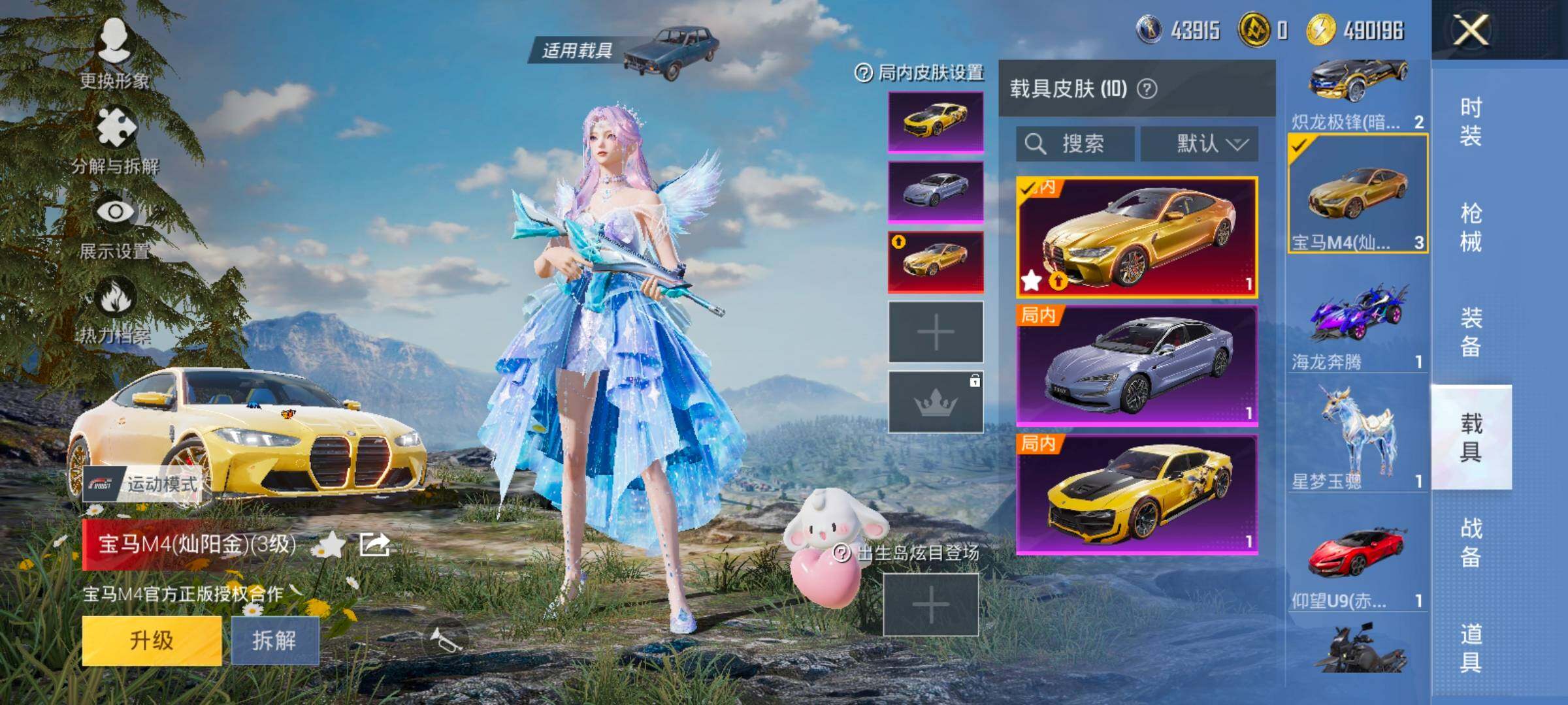 【10载具】,宝马M4(灿阳金),(3级),仰望U7先锋版(阿盖尔紫),路特斯EL蓝色,仰望U9(赤霞丹朱),炽龙极锋(暗夜黑),永恒黄蜂,海龙奔腾,星梦玉骢,踏焰逐风摩托车,幽焰风驰摩托车,