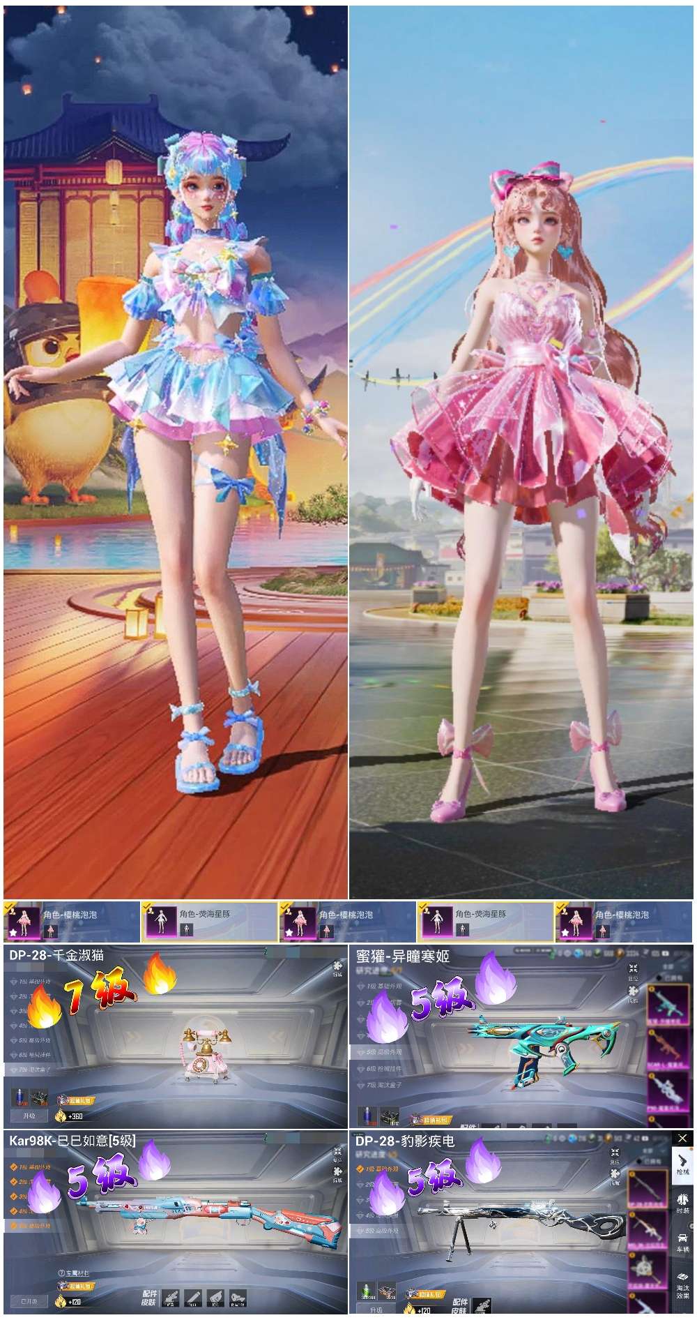【4特效枪】蜜獾-异瞳寒姬/5级,DP-28-豹影疾电/5级,Kar98K-巳巳如意/5级,DP-28-千金淑猫/7级