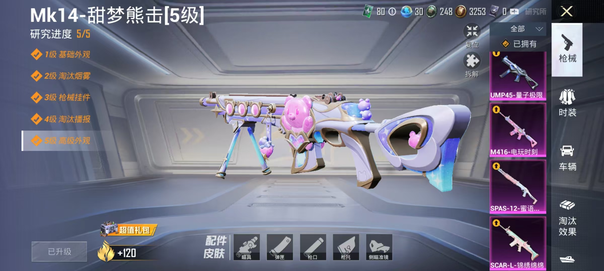 PX_2413383-2粉装,140枪皮,68套装,35947热力,黄金,五级M416-电玩时刻,五级SPAS-12-蜜语绒猫,五级SCAR-L-锦绣绵绵,五级UMP45-量子极限,五级M762-青锋波束,五级Kar98K-巳巳如意,五级14-甜梦熊击,奇异狩猎者,创世·救赎,千金淑猫