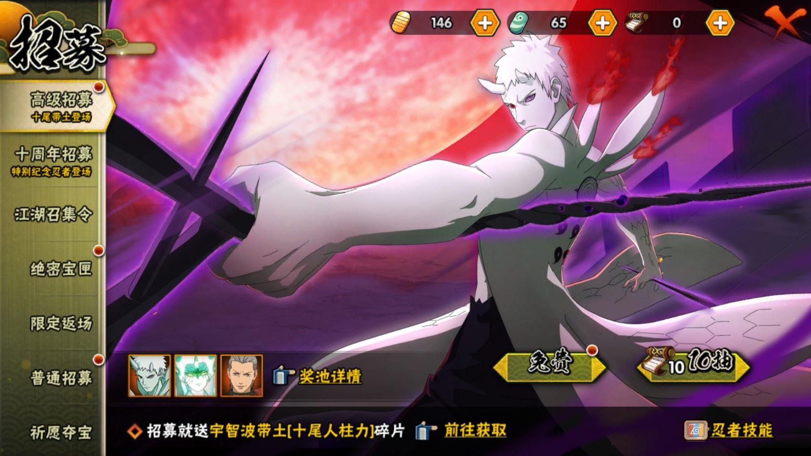 ,宇智波佐助「永恒万花筒」,自来也「舞之豪杰」,自来也「传说中的三忍」,漩涡鸣人「暴怒·第六尾」,宇智波鼬「须佐能乎」,波风水门「九喇嘛连结」,