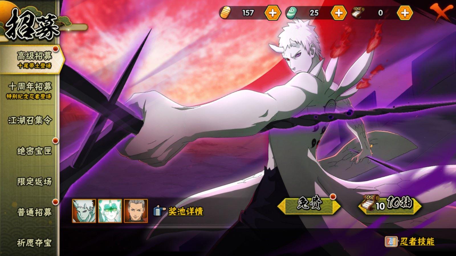 【S忍者】,宇智波佐助「漩涡鸣人」,宇智波带土「忍界大战」,自来也「舞之豪杰」,宇智波斑「白面具」,千手扉间「秽土转生」,猿飞日斩「秽土转生」,宇智波鼬「须佐能乎」,佩恩「天道」,波风水门,大蛇丸,