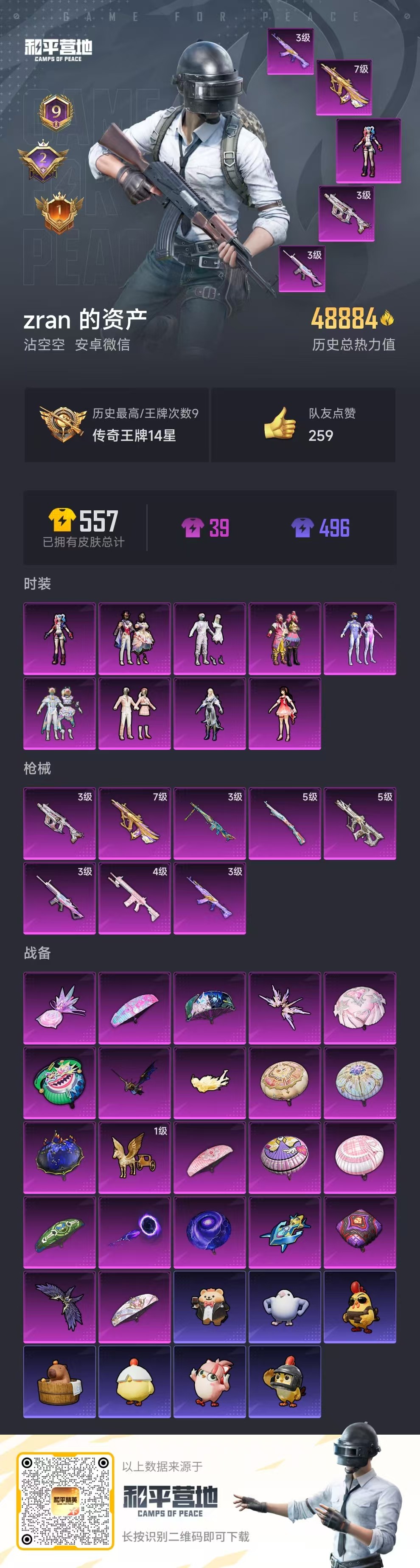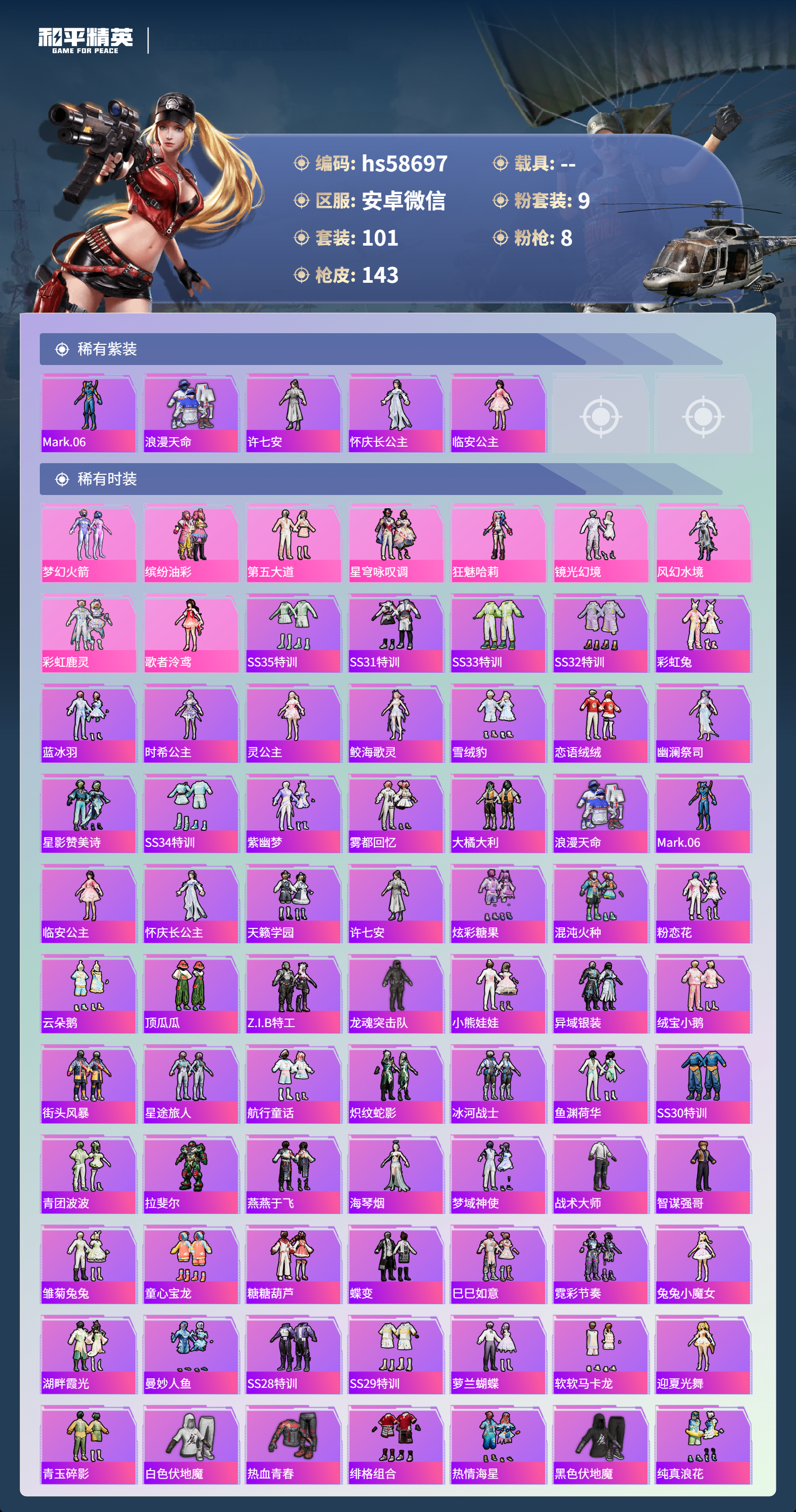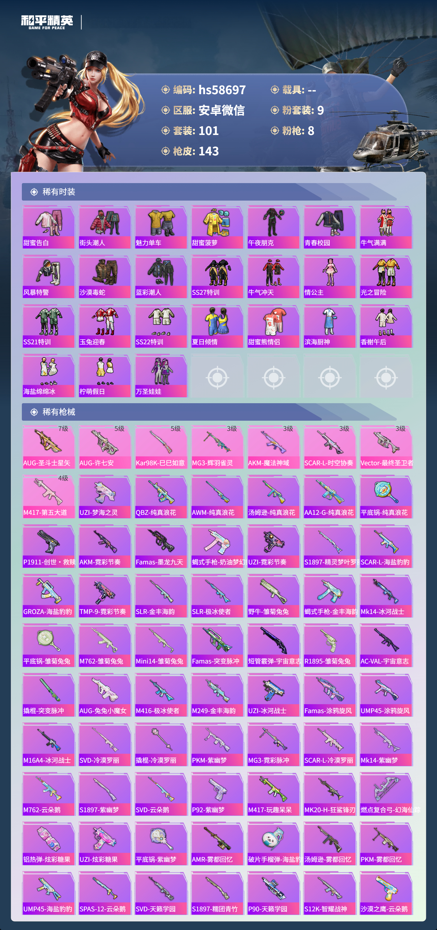 PX_2404508-,安卓微信-9王牌印记-9粉装-8特效枪-48884热力值-101套装-143枪皮-2卓越印记-1传奇印记