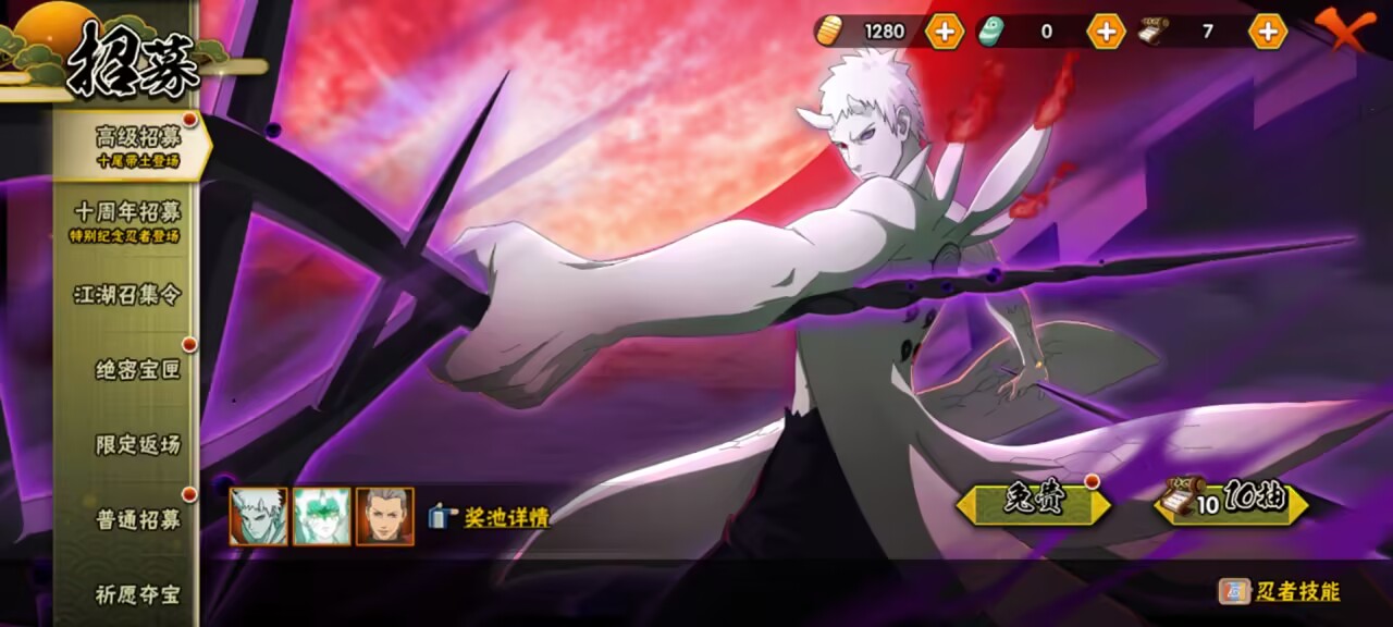 ,自来也「舞之豪杰」,自来也「传说中的三忍」,药师兜「仙人模式」,宇智波鼬「须佐能乎」,波风水门「九喇嘛连结」,