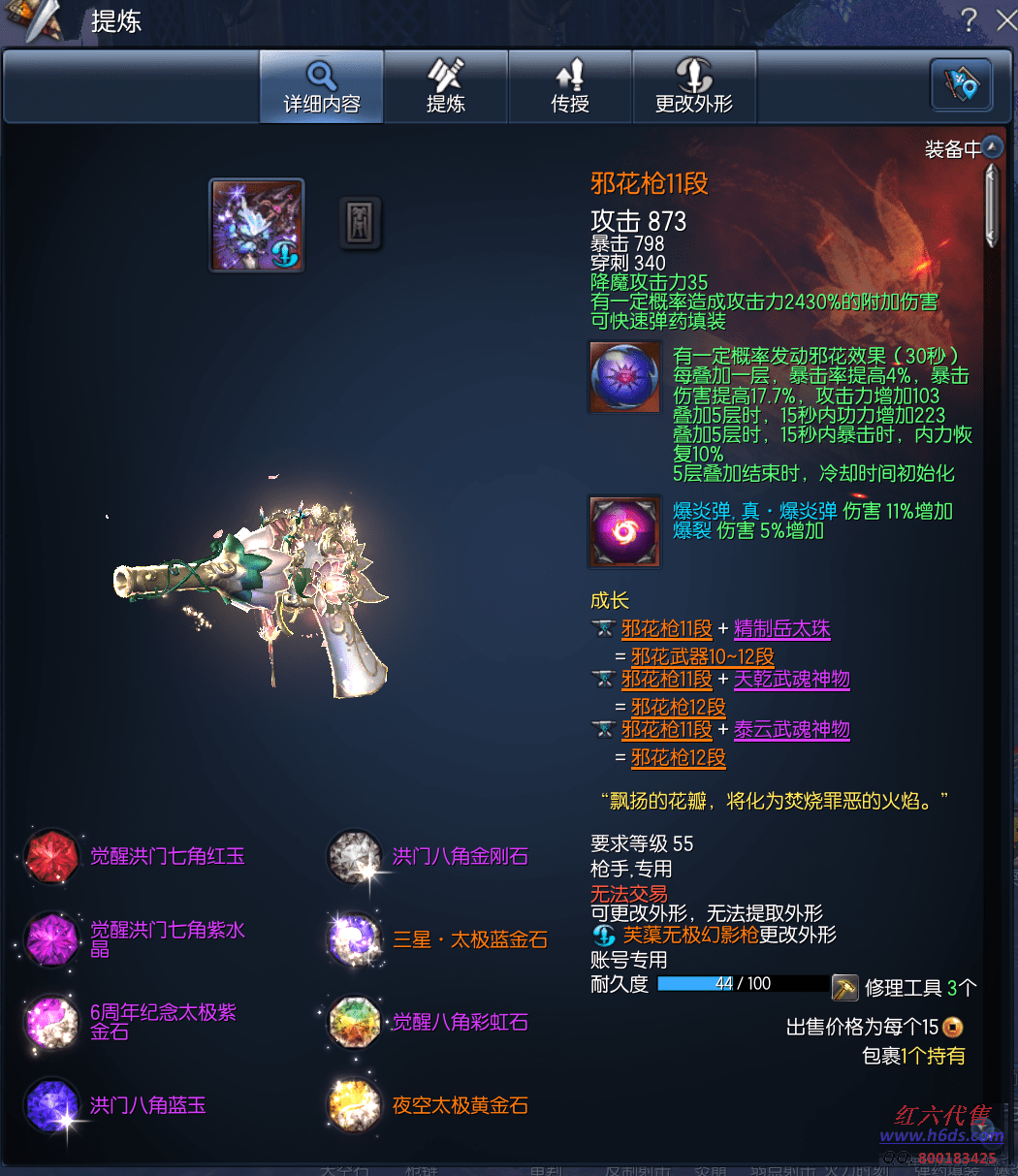 J12764,无日峰枪手,侠义团30段,三星太极石X1,命运真气石10段,邪花元气石2段,邪花枪11段,蟠桃戒指1段,雪峰耳环1段,雪峰项链1段,极龙手镯1段,金刚腰带1段,齐天手套1段,觉醒玄帝秘功牌1段,苍天神功牌,毁灭之梦幻魂10段,黄龙灵1段,觉醒守护石10段,金雷星1段,衣服27件,1000R ,可刀