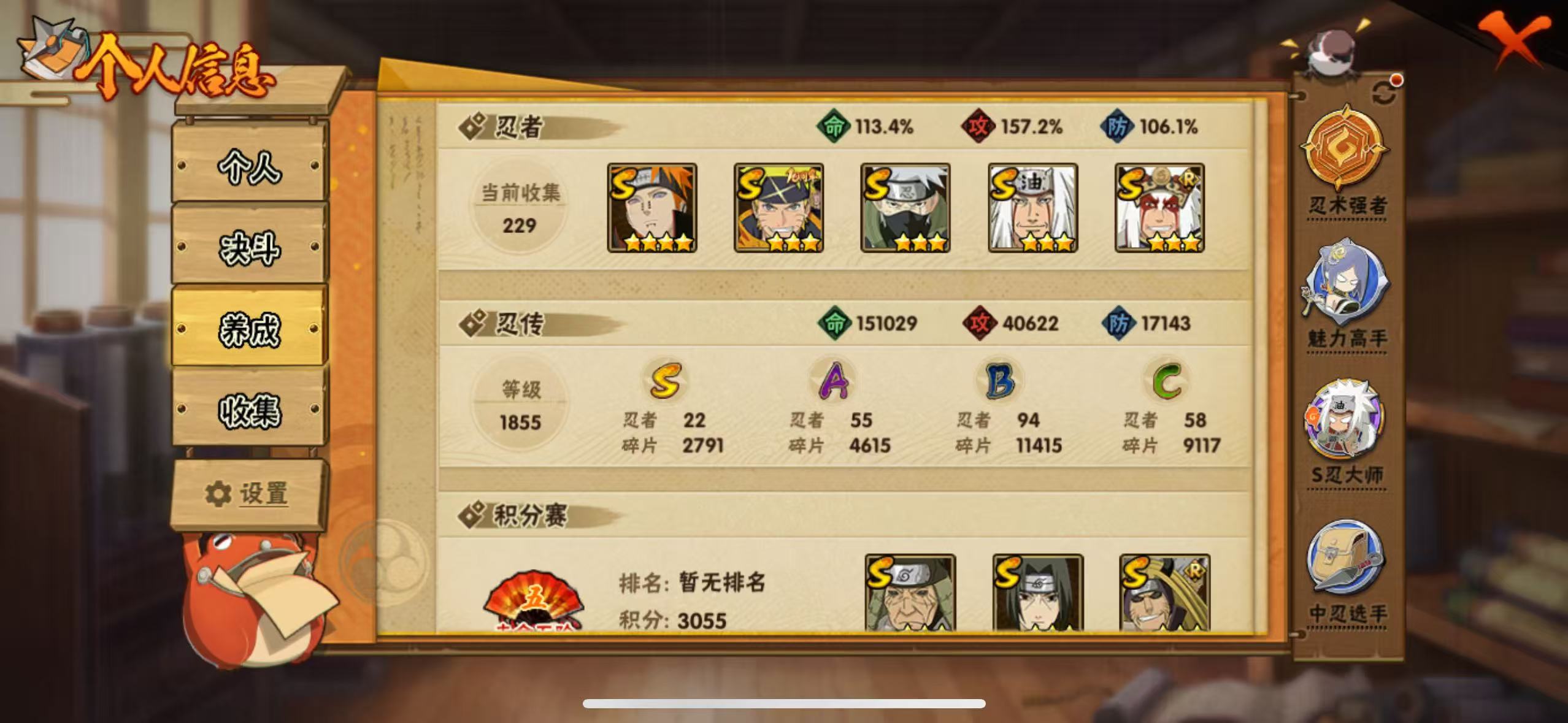 PX_2446201-2,A忍者55,通灵22】【苹果Q-202区-149级-V13-1072万战力】【S级】千手柱间,自来也,漩涡鸣人·宇智波佐助,宇智波鼬「须佐能乎」,长门「秽土转生」,艾「三代目雷影」,波风水门「九喇嘛连结」,金角银角「秽土转生」,自来也「舞之豪杰」,旗木卡卡西「须佐能乎」,猿飞日斩「秽土转生」,宇智波斑,千手扉间,大蛇丸,自来也「传说中的三忍」,艾「四代目雷影」,艾「忍界大战」,半藏「