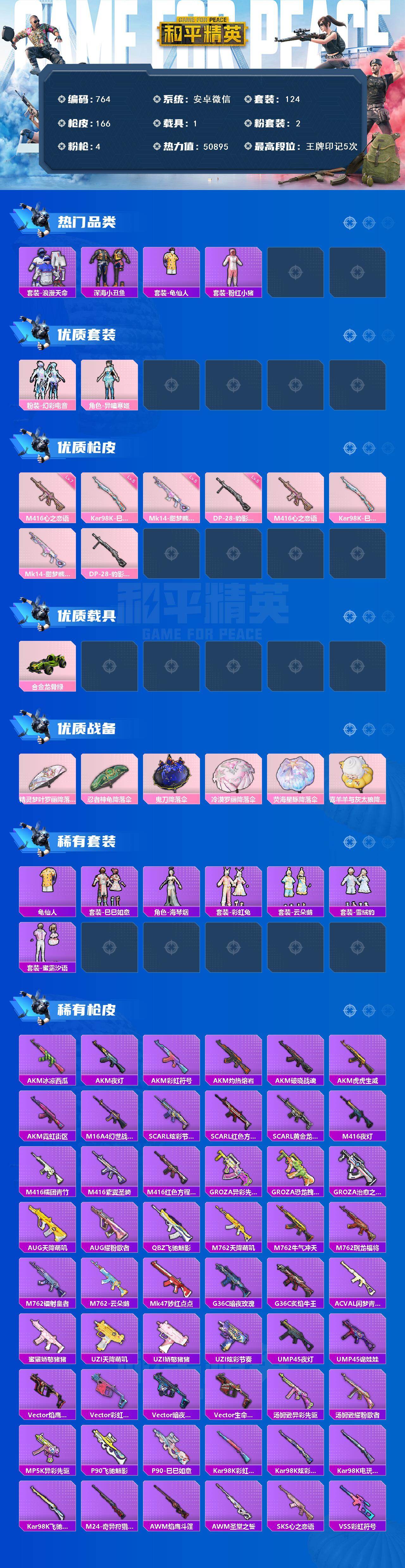 PX_2453045-,微信-2粉装-4特效枪-1载具-0粉色飞行器-50895热力值-5王牌印记-124套装-166枪皮