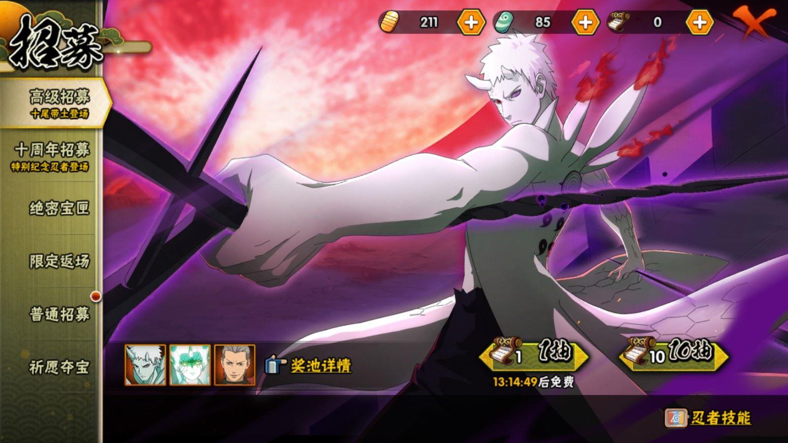 【S忍者】,宇智波佐助「漩涡鸣人」,宇智波斑「秽土转生·解」,漩涡鸣人「九喇嘛连结」,迈特凯「死门」,自来也「舞之豪杰」,大筒木舍人「最终章」,漩涡鸣人「暴怒·第六尾」,宇智波鼬「秽土转生」,药师兜「仙人模式」,宇智波斑「秽土转生」,宇智波鼬「须佐能乎」,佩恩「天道」,波风水门,大蛇丸,