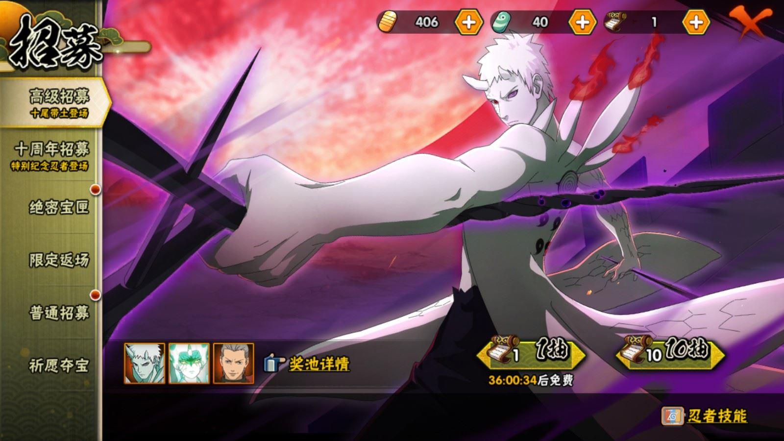 【S忍者】,宇智波佐助「漩涡鸣人」,宇智波止水「须佐能乎」,大筒木桃式,宇智波斑「秽土转生·解」,千手柱间「木叶创立」,宇智波佐助「永恒万花筒」,自来也「舞之豪杰」,旗木卡卡西「须佐能乎」,宇智波鼬「须佐能乎」,佩恩「天道」,波风水门,大蛇丸,