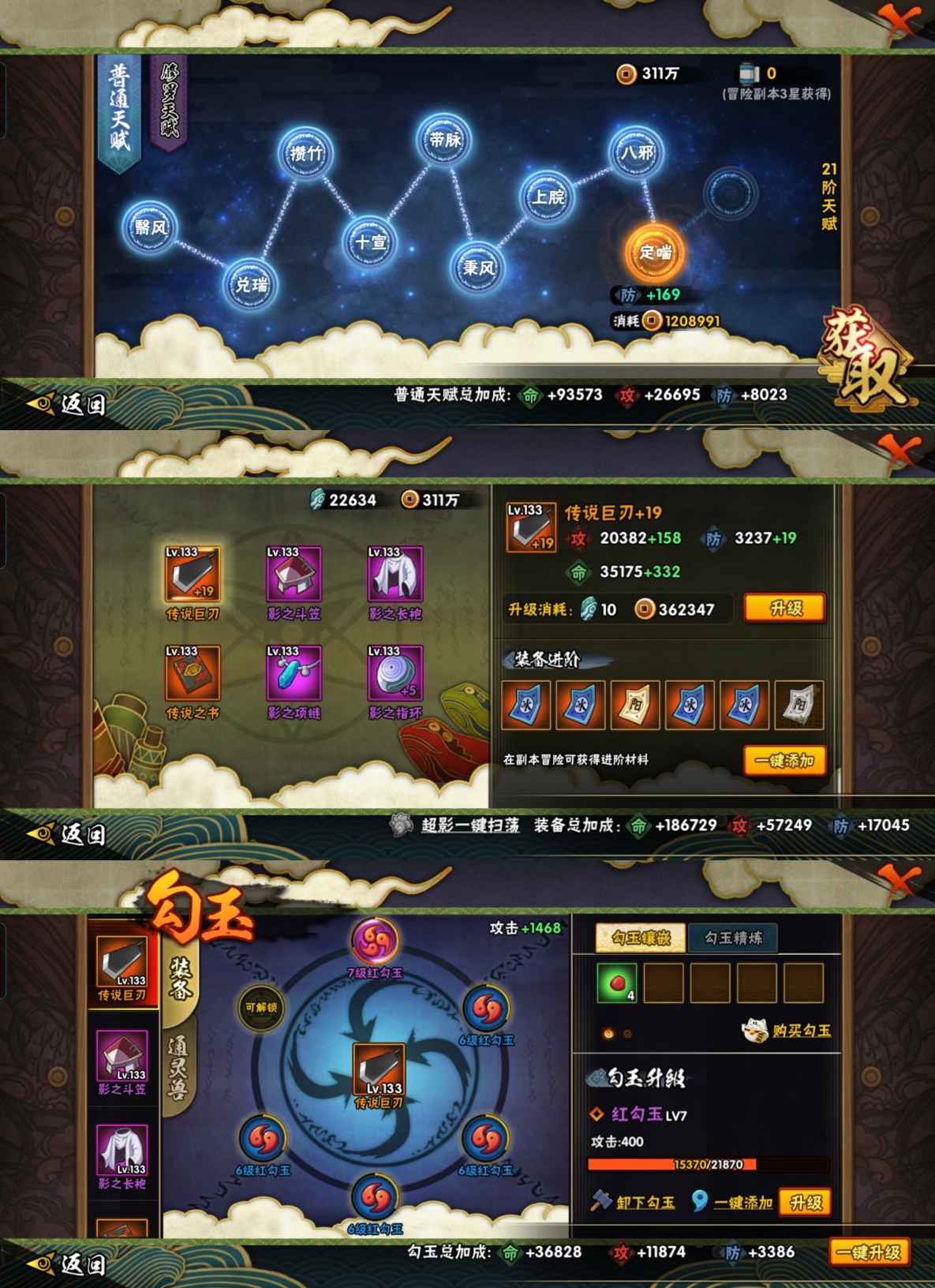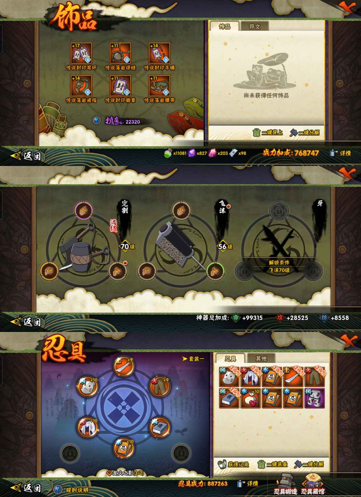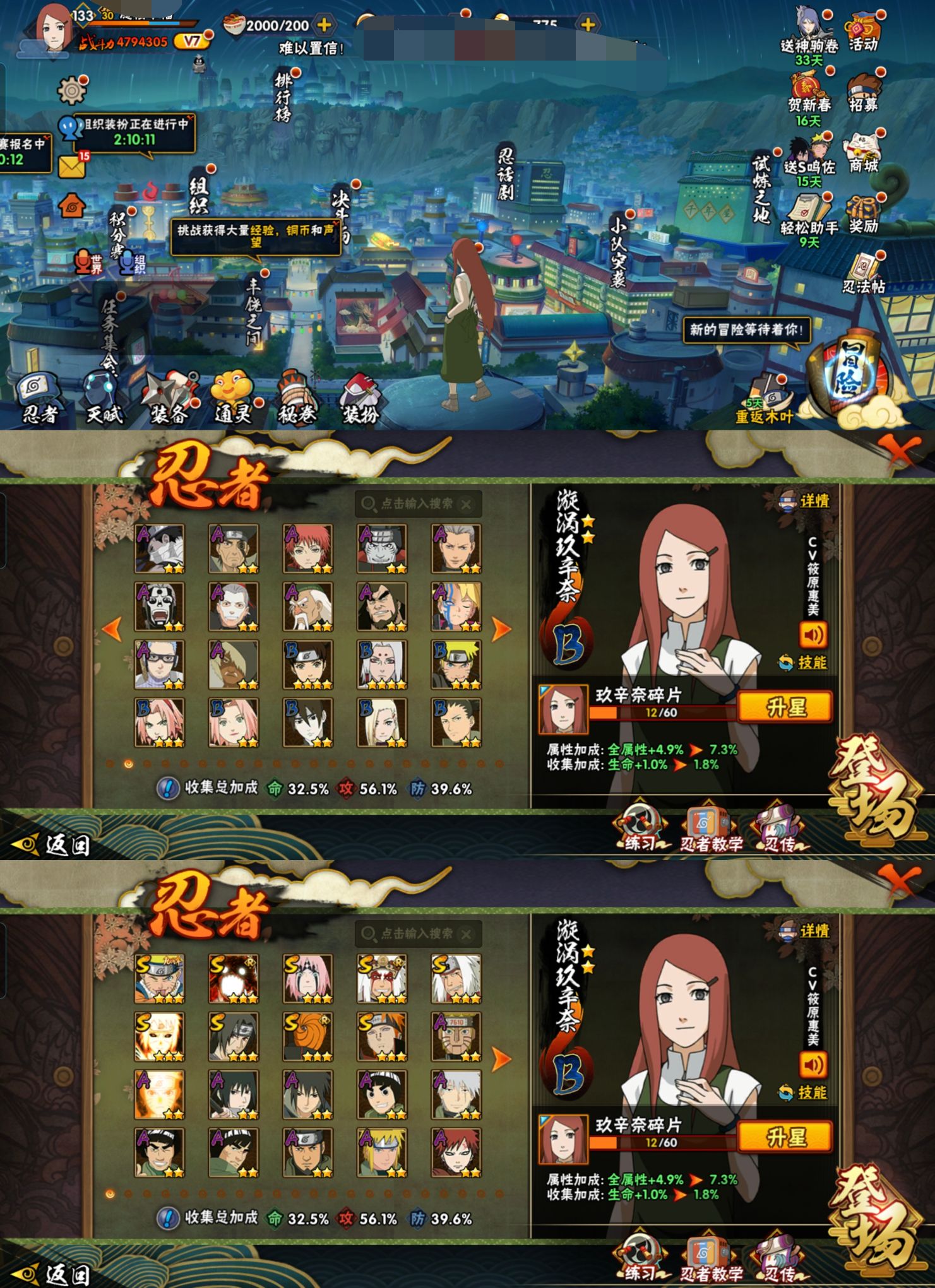 PX_2462992-097【等级】133【S级数量】9【A级数量】23【B级数量】31【C级数量】36【S级】自来也「舞之豪杰」,春野樱「忍界大战」,佩恩「天道」,漩涡鸣人·宇智波佐助,宇智波鼬「须佐能乎」,自来也「传说中的三忍」,波风水门「九喇嘛连结」,漩涡鸣人「暴怒·第六尾」,宇智波斑「五影会谈」【A级】大野木「侠隐江湖」,迈特凯「青春爆炸」,漩涡鸣人「九尾查克拉」,我爱罗「疾风传」,飞段,机械鸣人「初