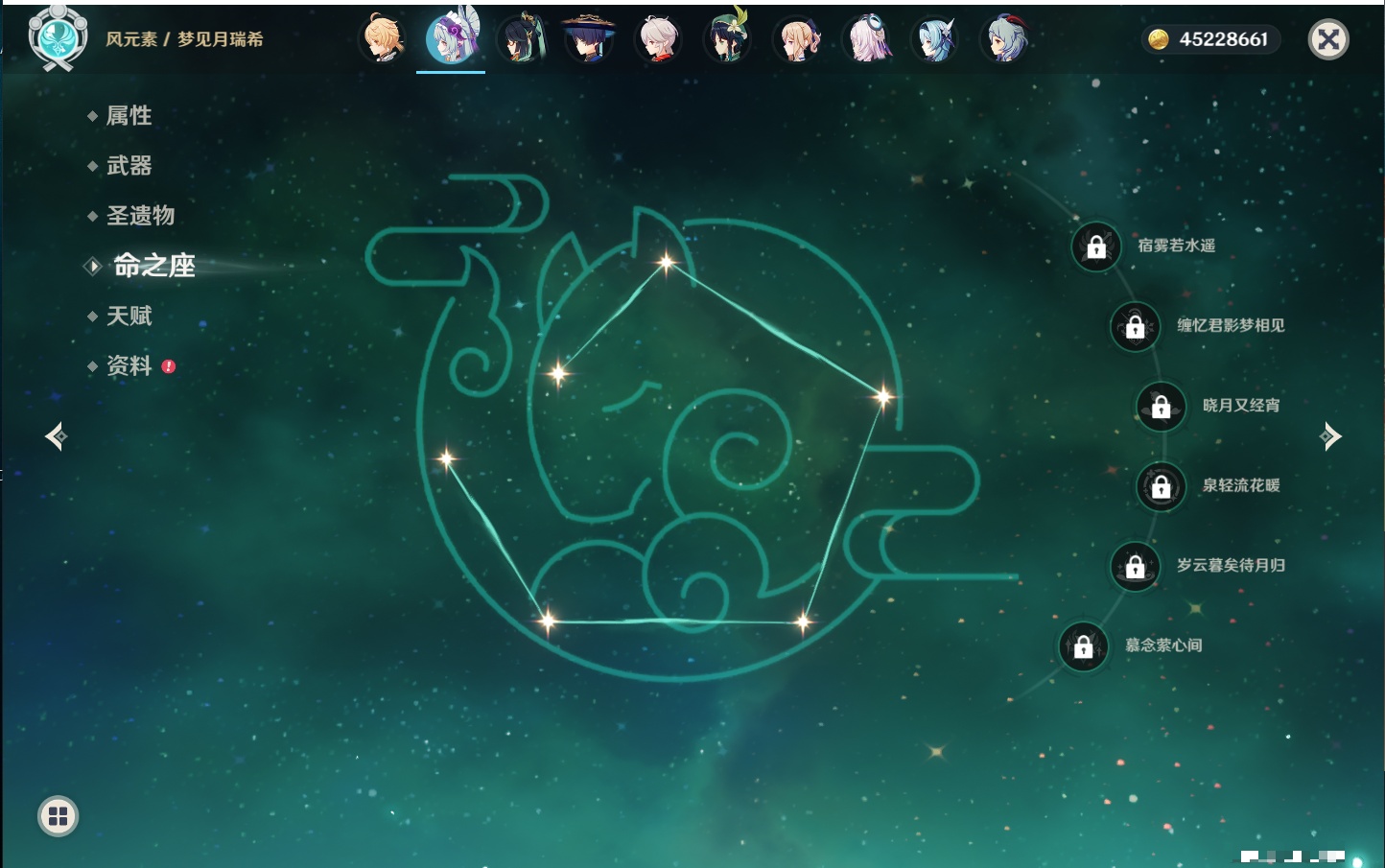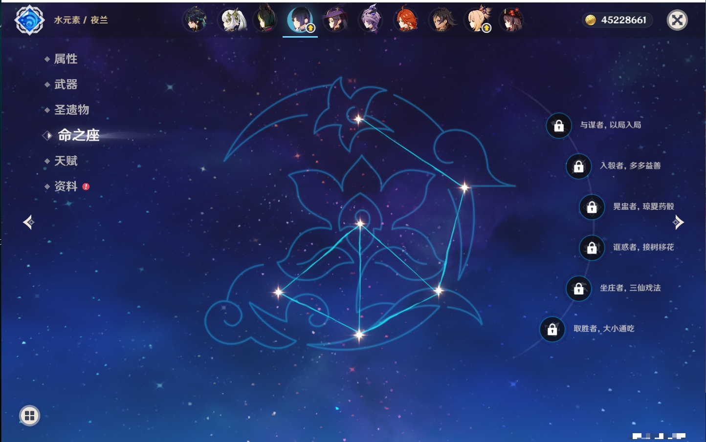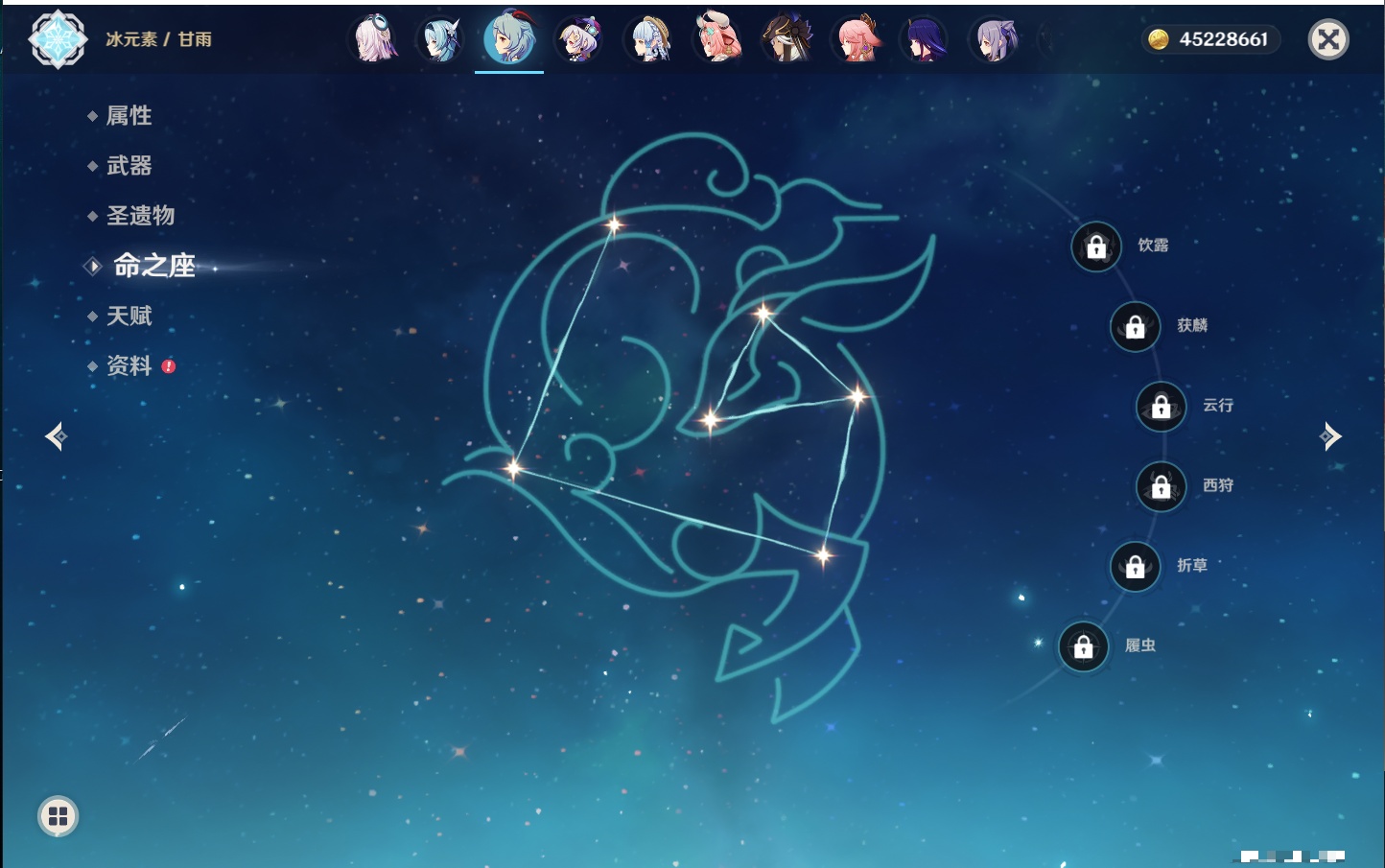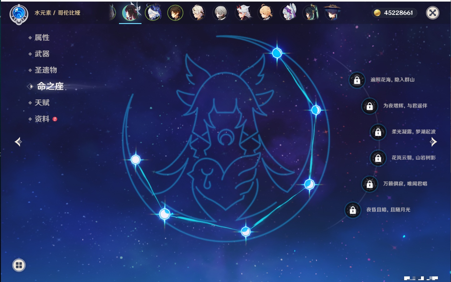 【32个五星角色】,满命莫娜,5命迪卢克,3命那维莱特,3命雷电将军,3命刻晴,2命迪希雅,2命琴,2命基尼奇,1命提纳里,1命神里绫华,1命胡桃,1命七七,0命闲云,0命芙宁娜,0命流浪者,0命纳西妲,0命赛诺,0命夜兰,0命八重神子,0命荒泷一斗,0命优菈,0命枫原万叶,0命钟离,0命甘雨,0命宵宫,0命温迪,0命梦见月瑞希,0命茜特菈莉,0命瓦雷莎,0命杜林,0命玛薇卡,0命哥伦比娅,