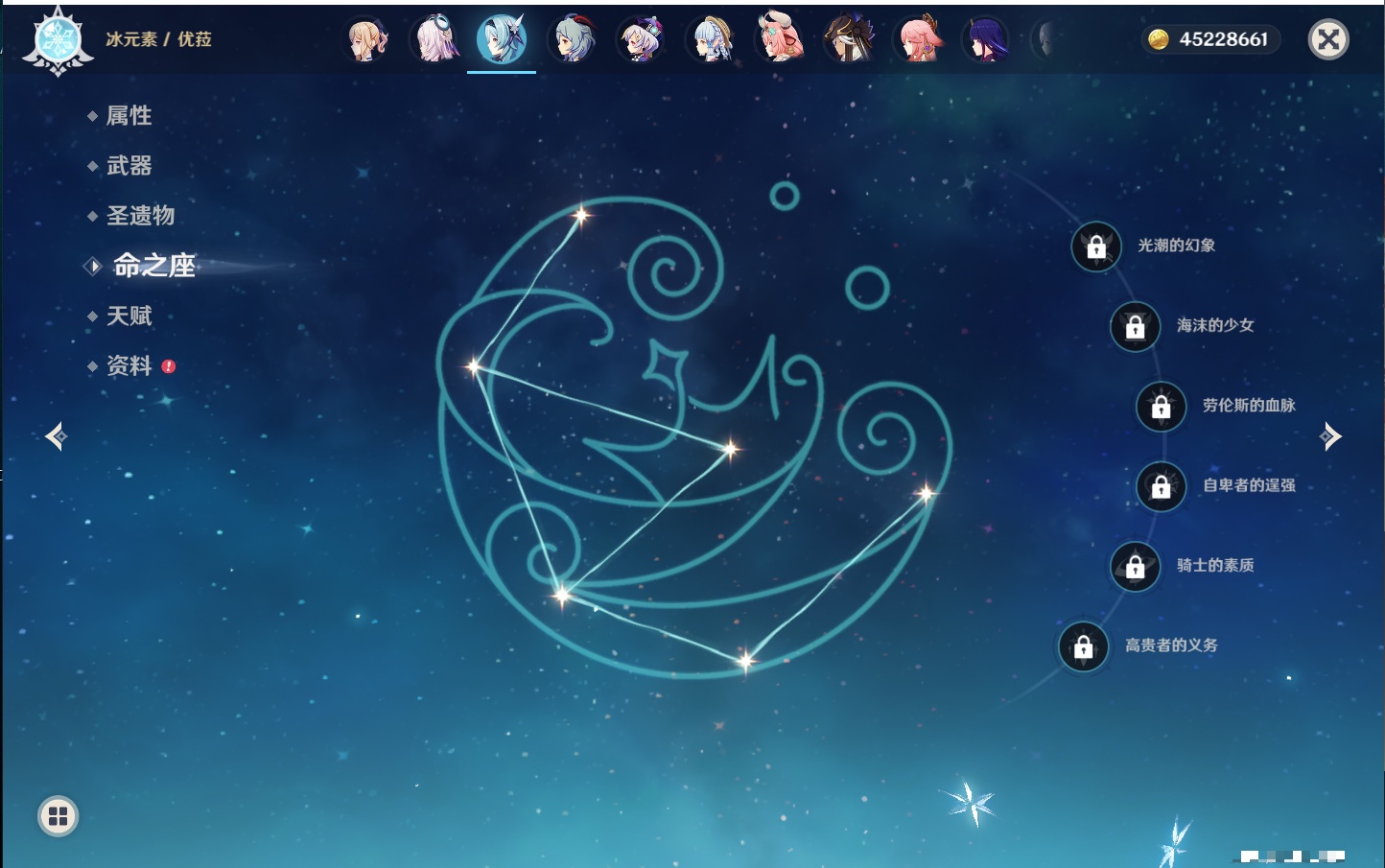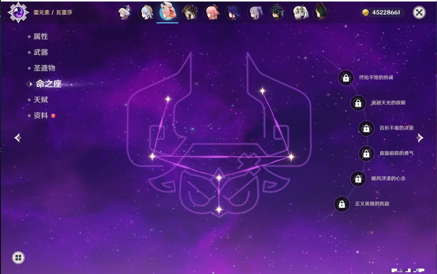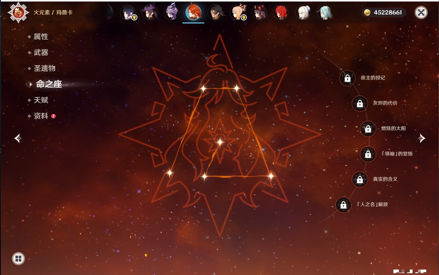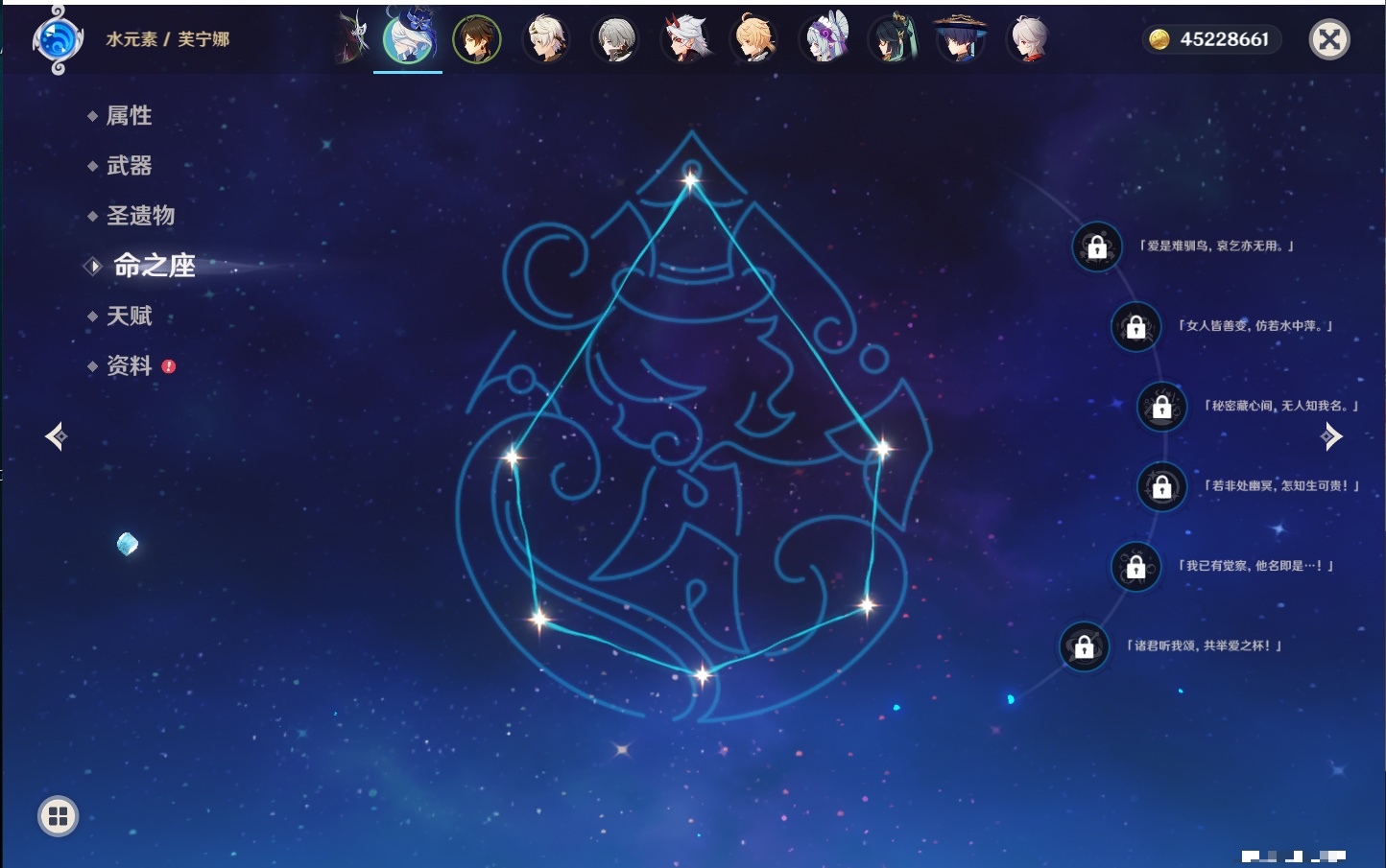 【32个五星角色】,满命莫娜,5命迪卢克,3命那维莱特,3命雷电将军,3命刻晴,2命迪希雅,2命琴,2命基尼奇,1命提纳里,1命神里绫华,1命胡桃,1命七七,0命闲云,0命芙宁娜,0命流浪者,0命纳西妲,0命赛诺,0命夜兰,0命八重神子,0命荒泷一斗,0命优菈,0命枫原万叶,0命钟离,0命甘雨,0命宵宫,0命温迪,0命梦见月瑞希,0命茜特菈莉,0命瓦雷莎,0命杜林,0命玛薇卡,0命哥伦比娅,