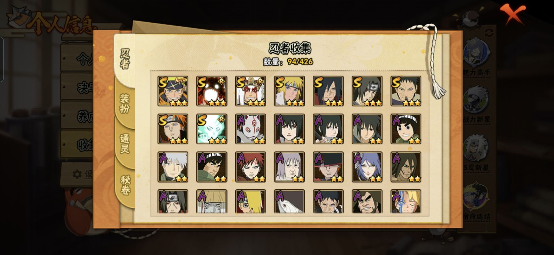PX_2474085-3830区,9S,17A,通灵14】【区服】3830【等级】135【S级数量】9【A级数量】19【B级数量】34【C级数量】32【S级】漩涡鸣人「暴怒·第六尾」,大筒木舍人「最终章」,自来也「舞之豪杰」,漩涡鸣人·宇智波佐助,宇智波带土「忍界大战」,宇智波鼬「须佐能乎」,波风水门,佩恩「天道」,宇智波斑「秽土转生·解」,【A级】旗木卡卡西「幻之真容」,宇智波鼬,千代「近松十人卫」,李洛克