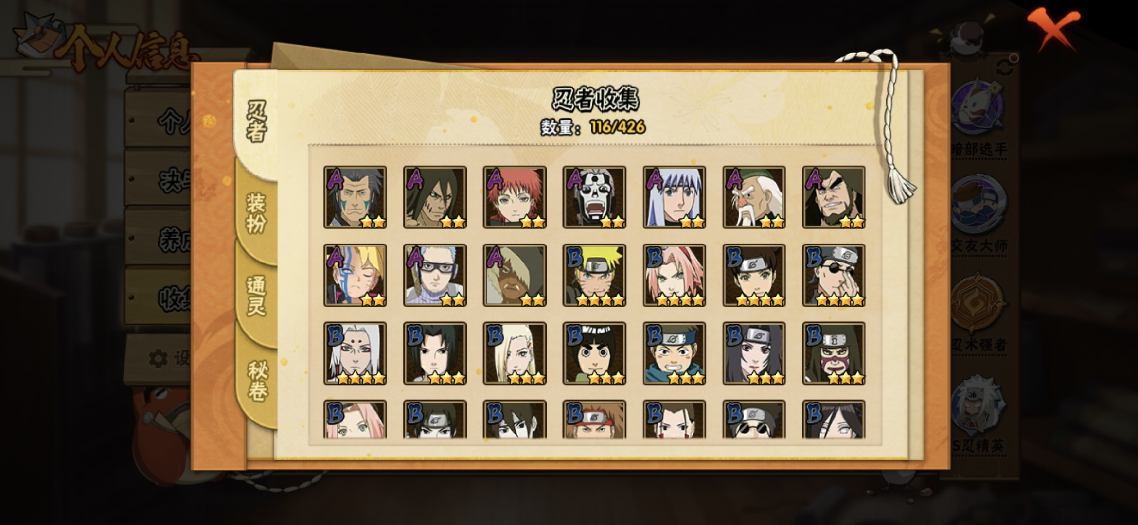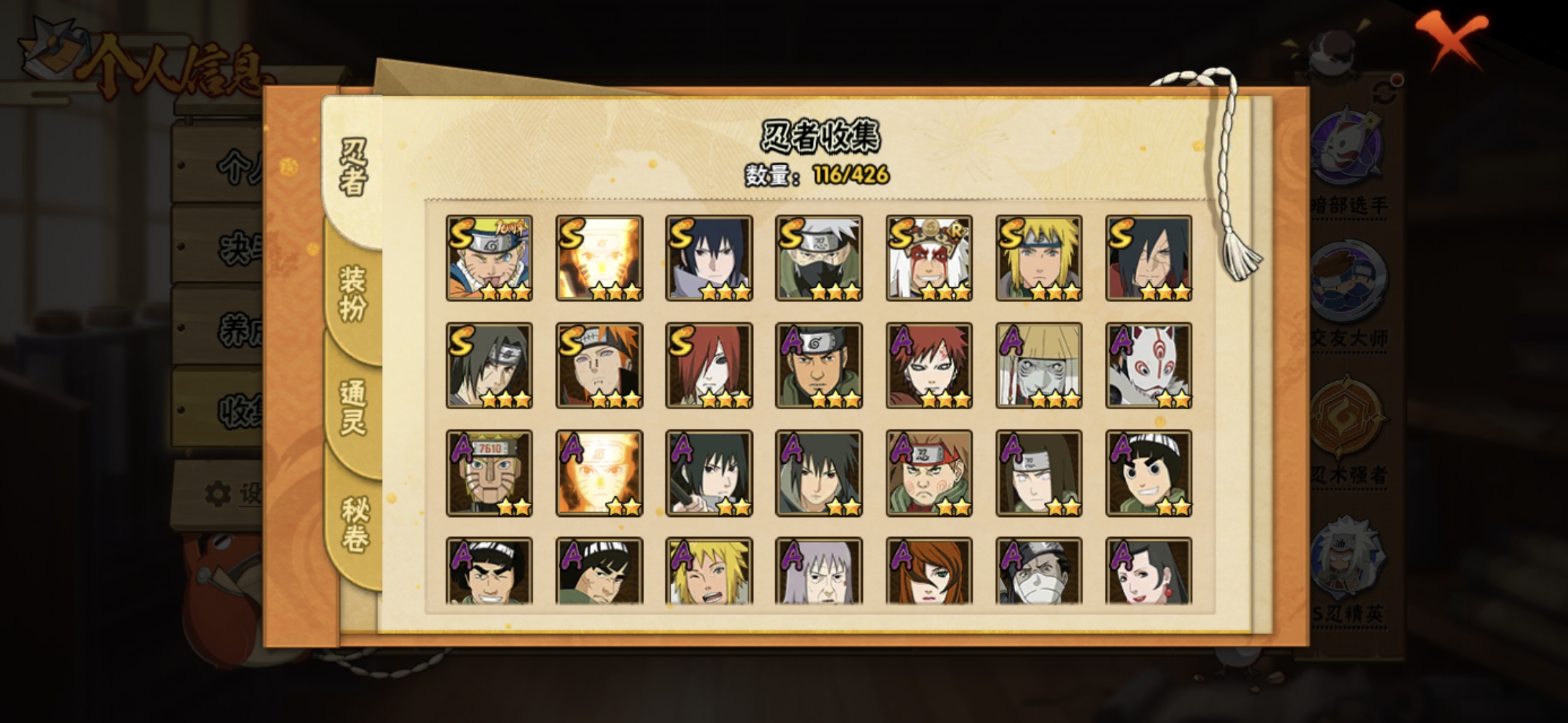 PX_2474091-518【等级】140【S级数量】10【A级数量】28【B级数量】41【C级数量】37【S级】自来也「舞之豪杰」,宇智波鼬「须佐能乎」,漩涡鸣人「九喇嘛连结」,宇智波佐助「永恒万花筒」,佩恩「天道」,漩涡鸣人·宇智波佐助,宇智波斑「秽土转生·解」,长门「秽土转生」,波风水门,旗木卡卡西「须佐能乎」,【A级】秋道丁次「忍界大战」,不缘,迈特凯,蝎,迈特凯「青春爆炸」,机械鸣人「初始形态」,宇
