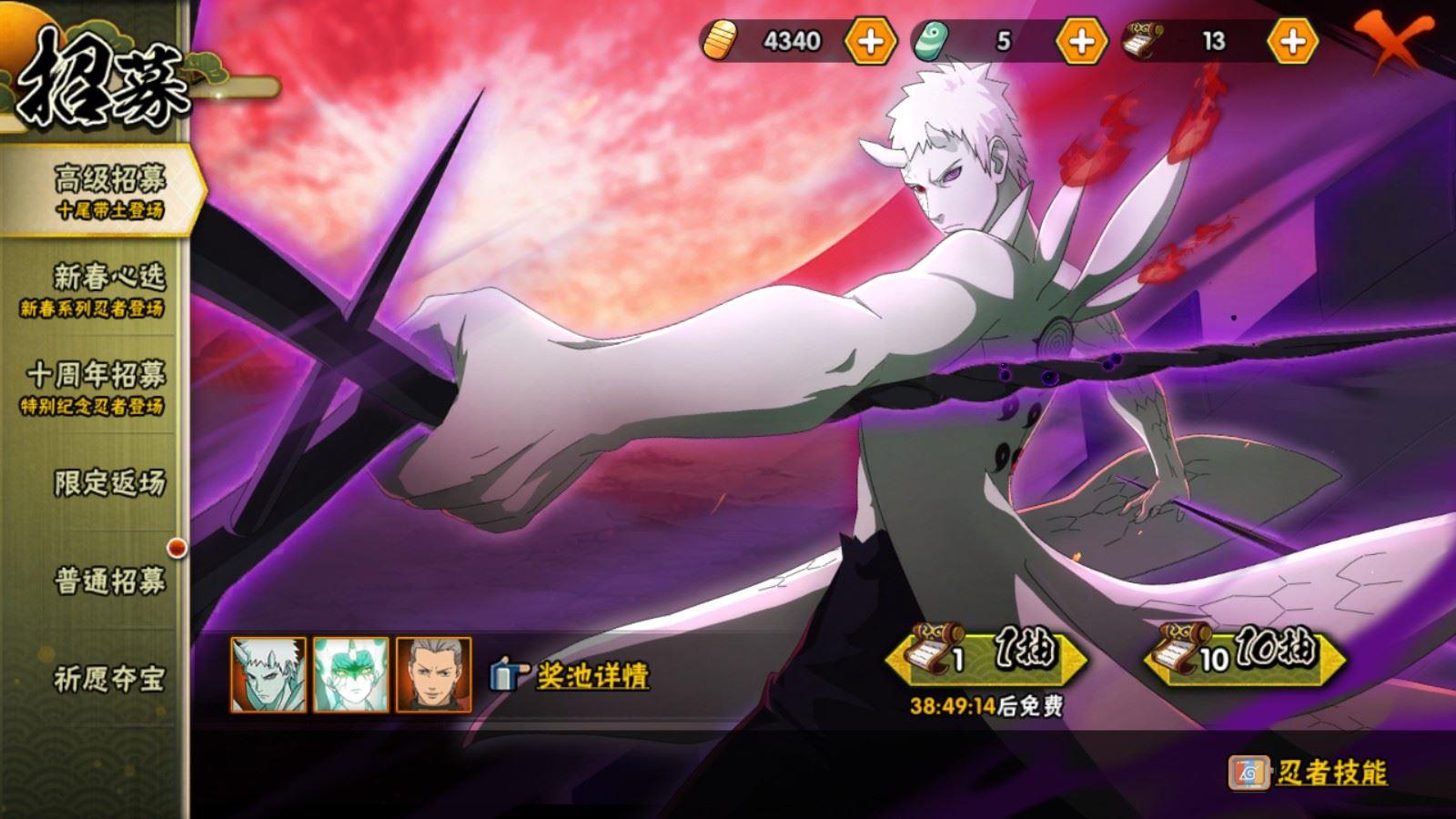 【S忍者】,宇智波佐助「漩涡鸣人」,宇智波佐助「永恒万花筒」,自来也「舞之豪杰」,旗木卡卡西「须佐能乎」,宇智波鼬「须佐能乎」,佩恩「天道」,波风水门「九喇嘛连结」,