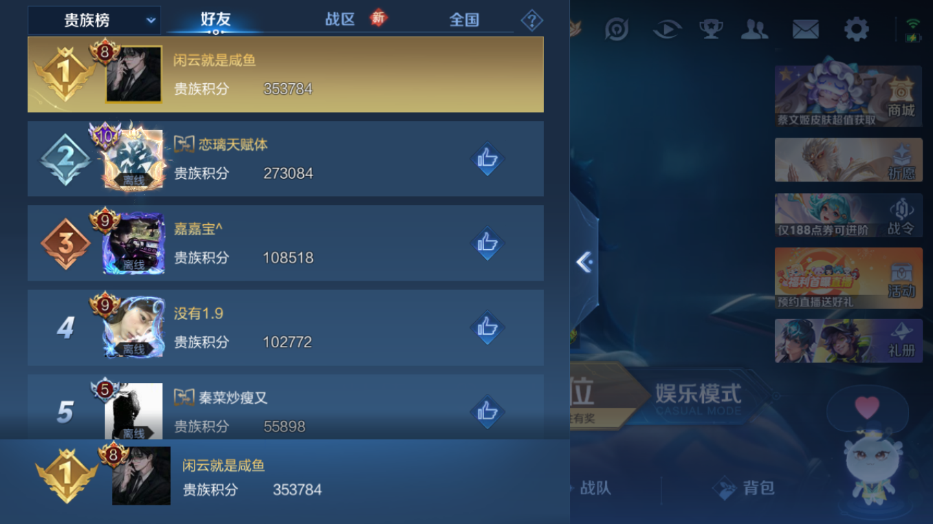 PX_2483609-【精品号手慢无】可换绑手机号,回归号,消耗任意点券恢复v10,,贵族积分353784,,35段打野,,76级收藏家,,14典藏,,无双皮武则天神器.明辉仪,,53传说皮,,478皮肤碎片,100+亲密道具,,5星传说,26个性按键,,灿若星河天幕墨上江山天幕秋月华灯天幕,性价比v10号。