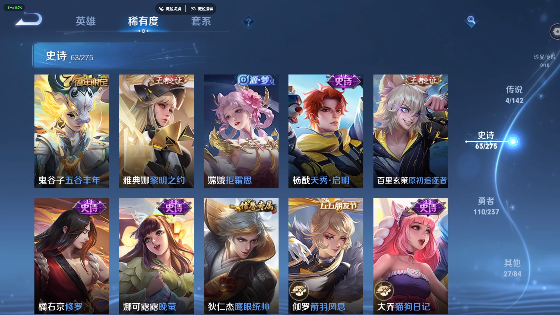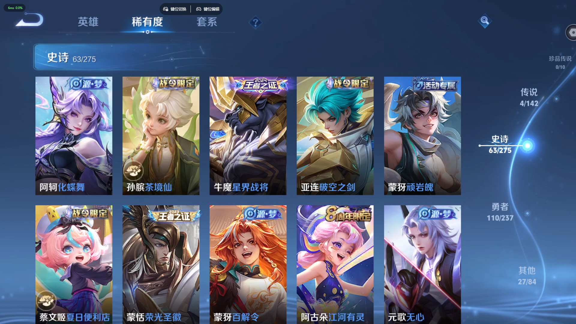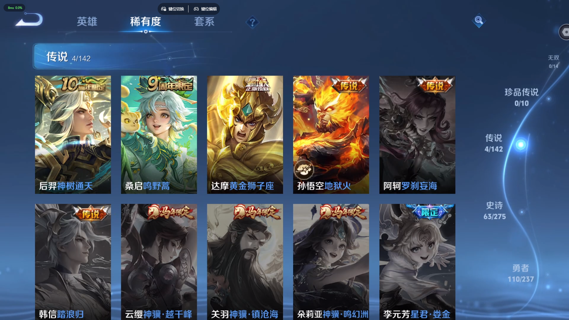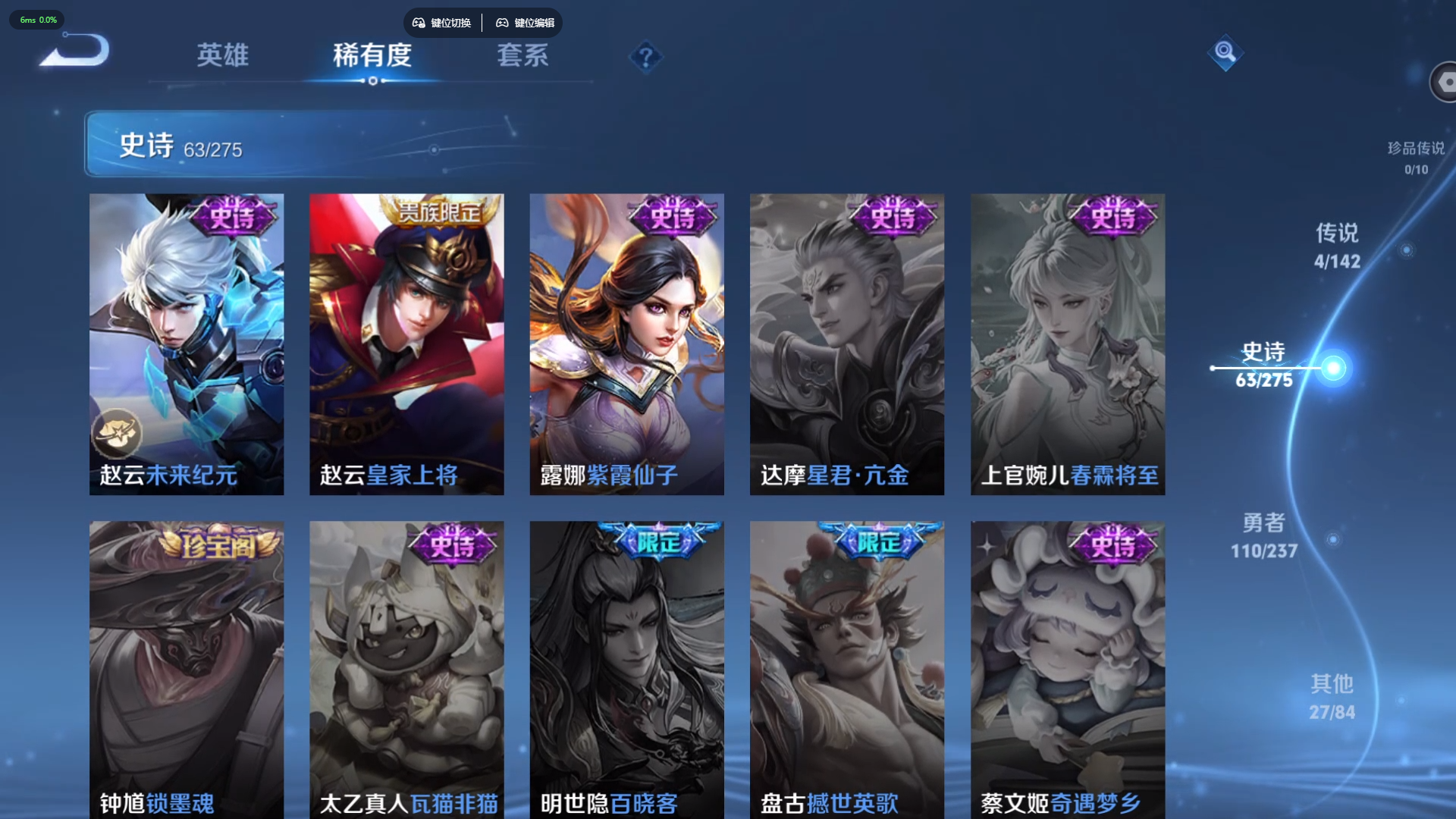W10022【安卓区V8】可二次实名,英雄104,皮肤161,典藏:李白鸣剑.曳