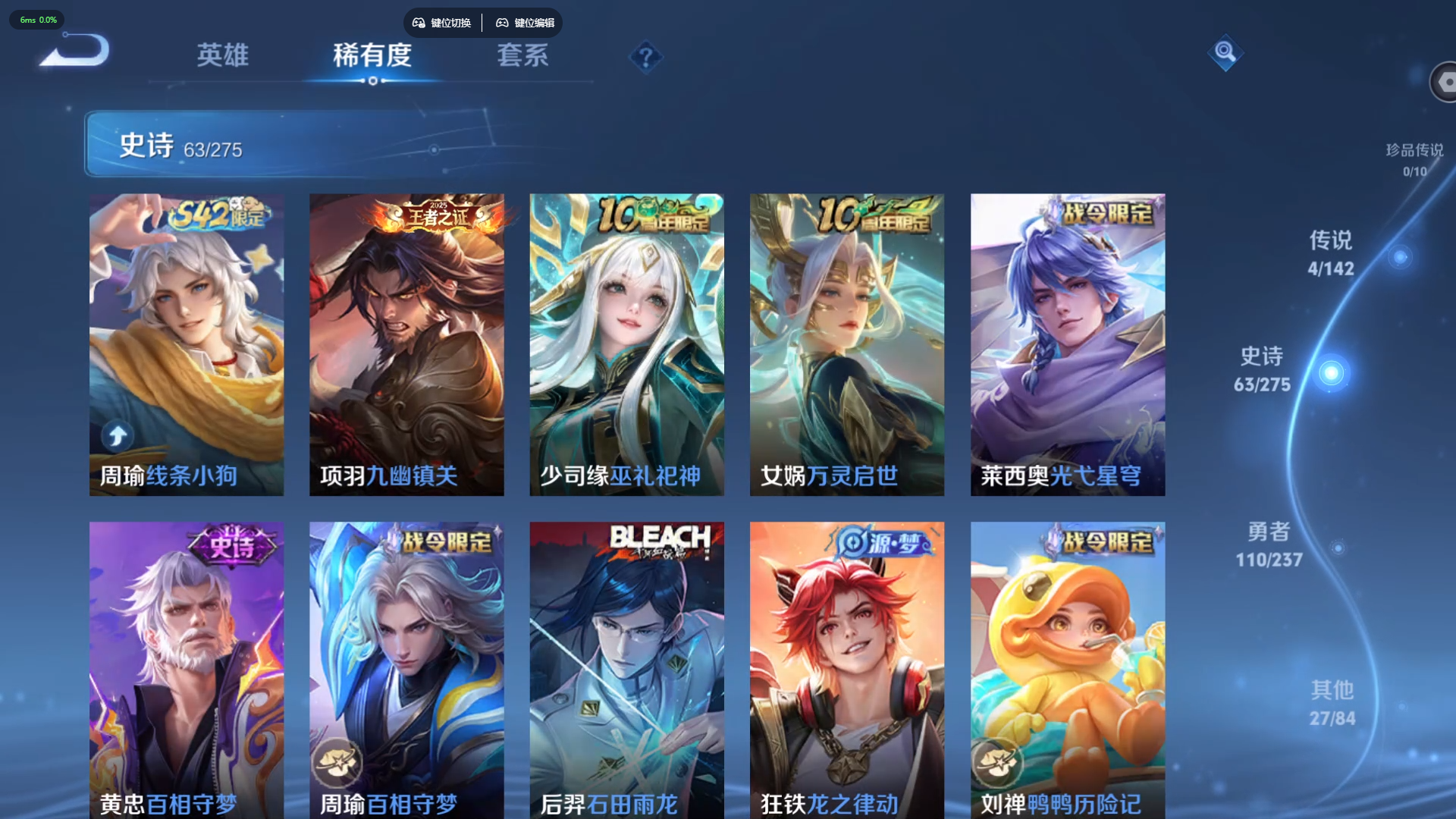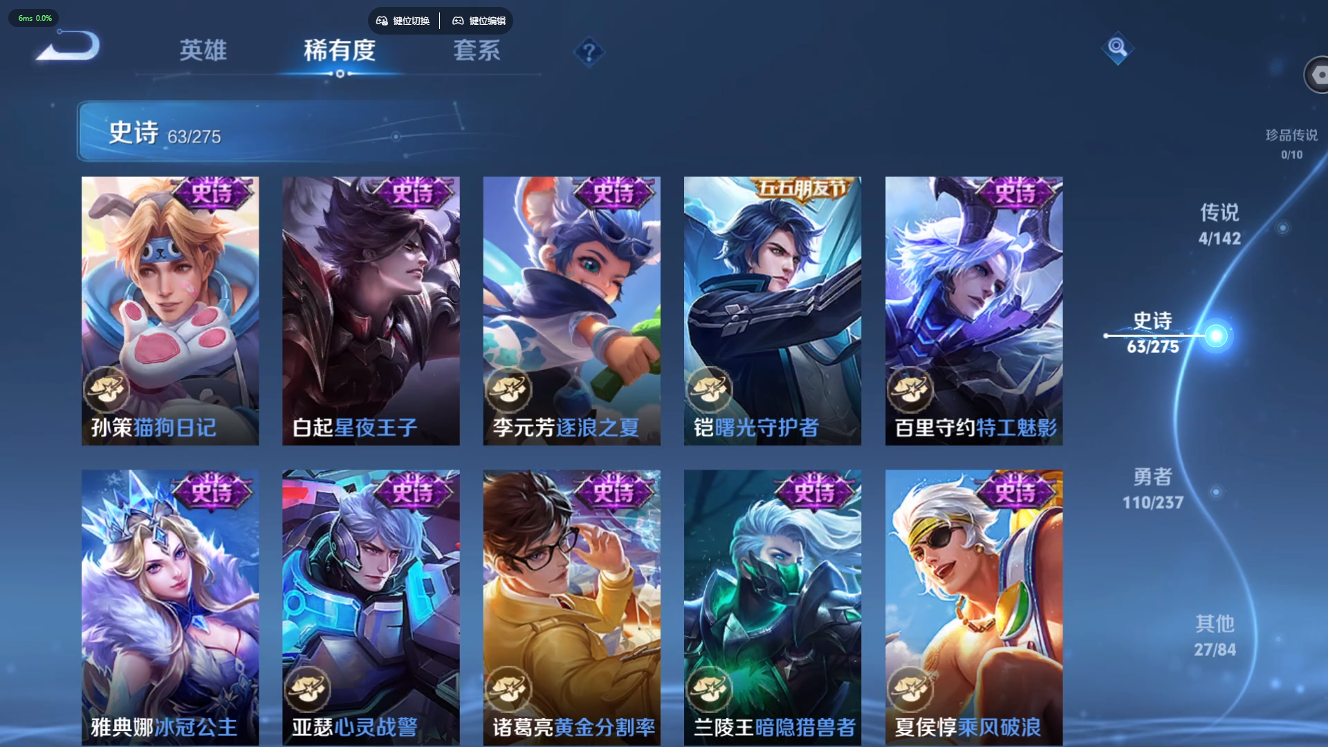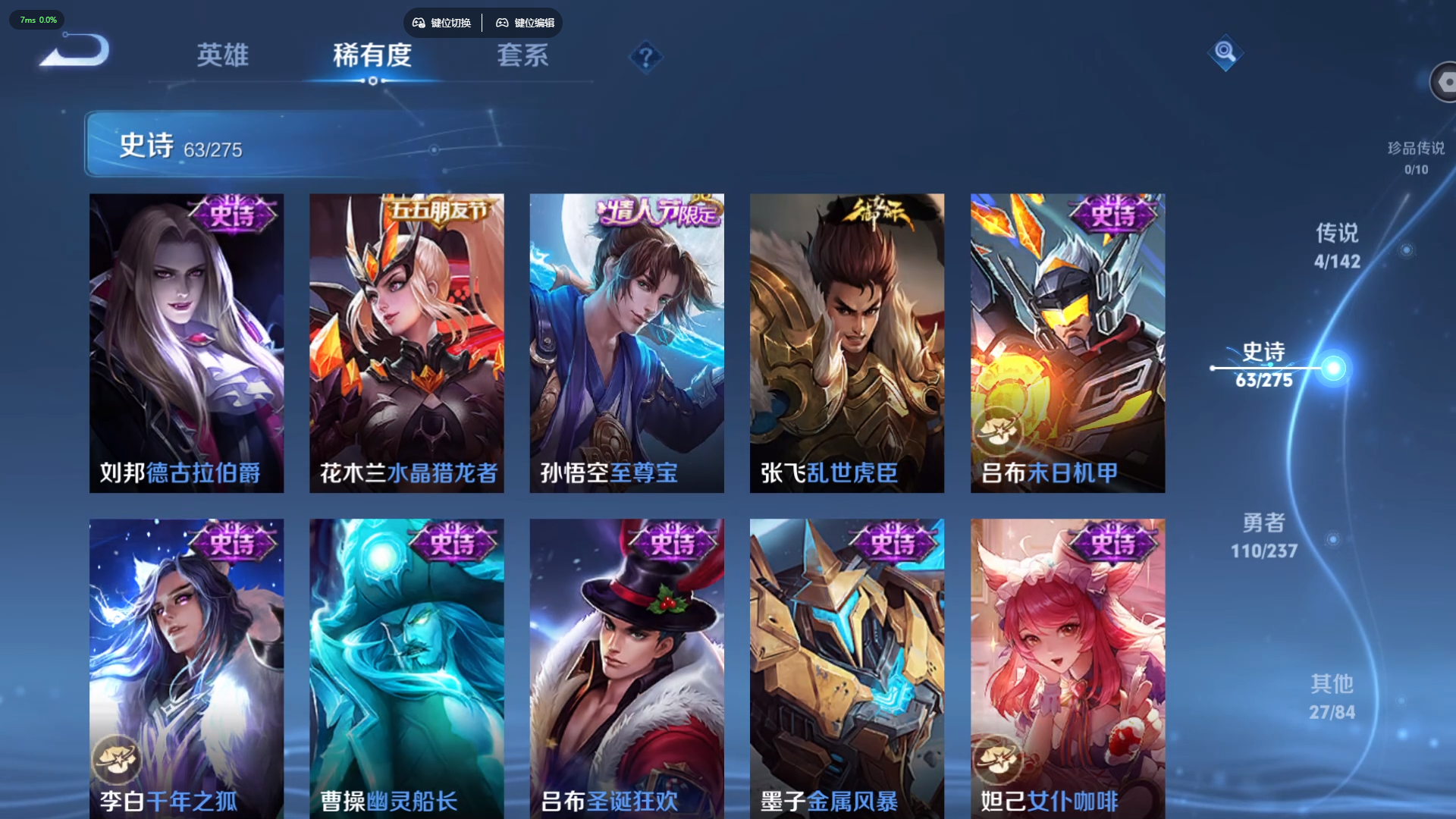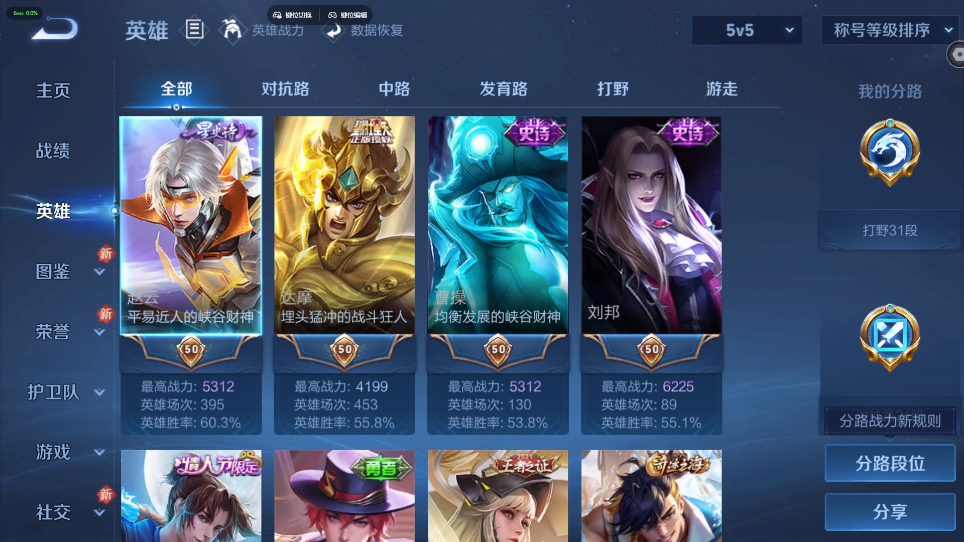 W10022【安卓区V8】可二次实名,英雄104,皮肤161,典藏:李白鸣剑.曳