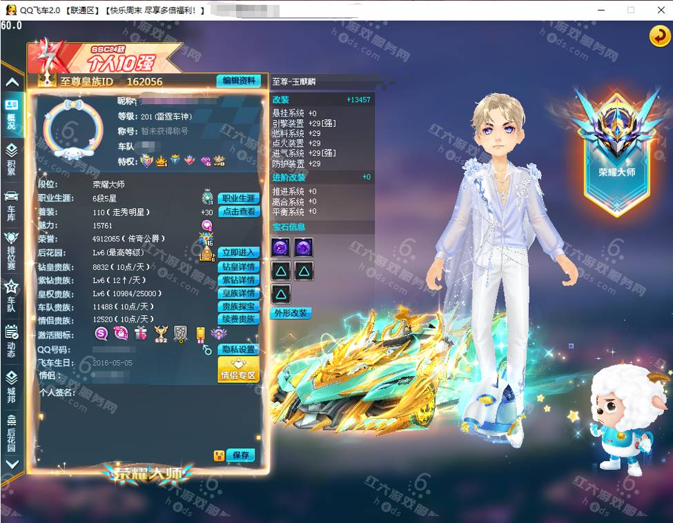 DS5005,红六更号裙762771576【联通一区】魅力1.5w,荣誉491w,紫钻6级/皇族6级,3S车:双四至尊火麒麟/玉麒麟+29,双四爆天甲/黄忠+29,双四终极烈焰新星+29,1T2,A车:天数雷诺/幻夜2阶,骑宠:小赵云+10,人鱼+7,喜羊羊+10,仙兽麒麟,9座椅,套装男34页:苍穹麒麟/浪漫苏打/SSc24秋冠军服饰/星海祈愿发饰,套装女42页:浪漫苏打/梅染琼枝/巧樱兔娘/絮声如初,5950R,