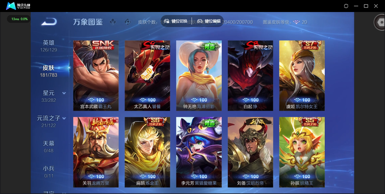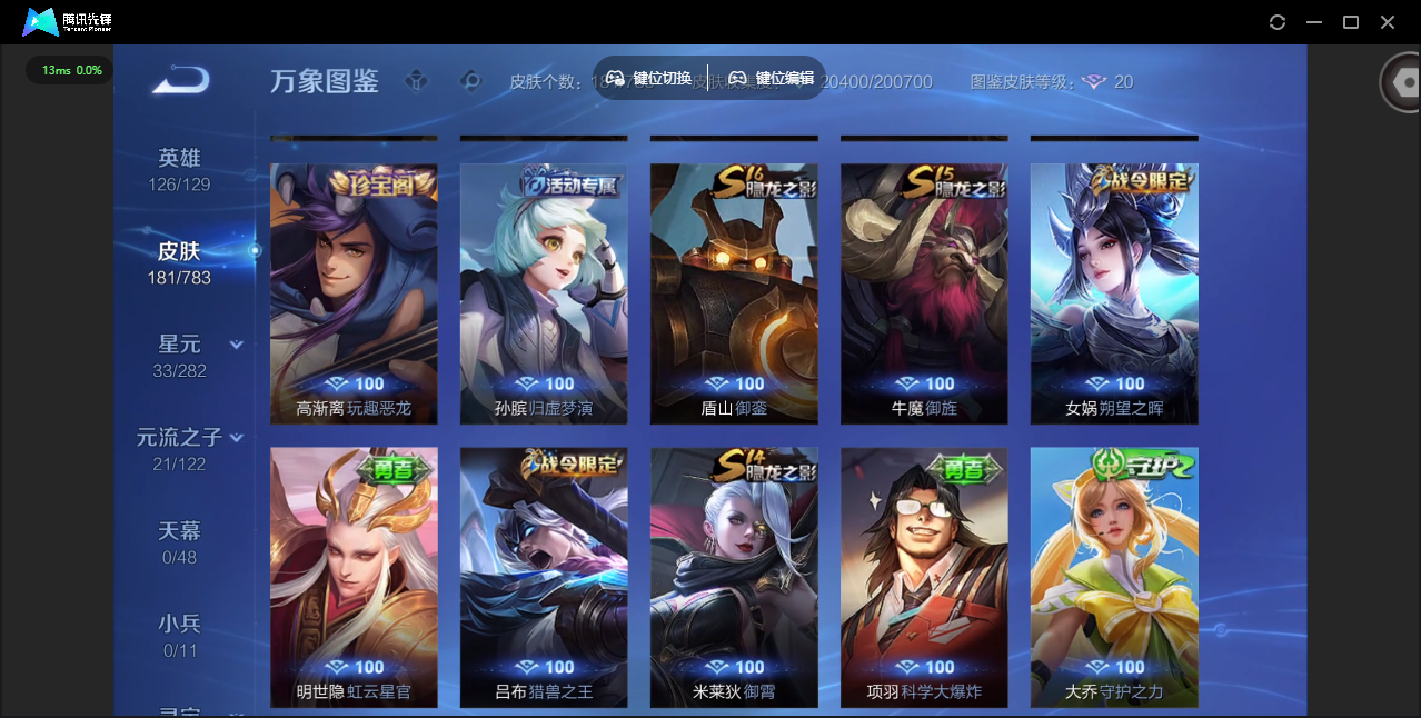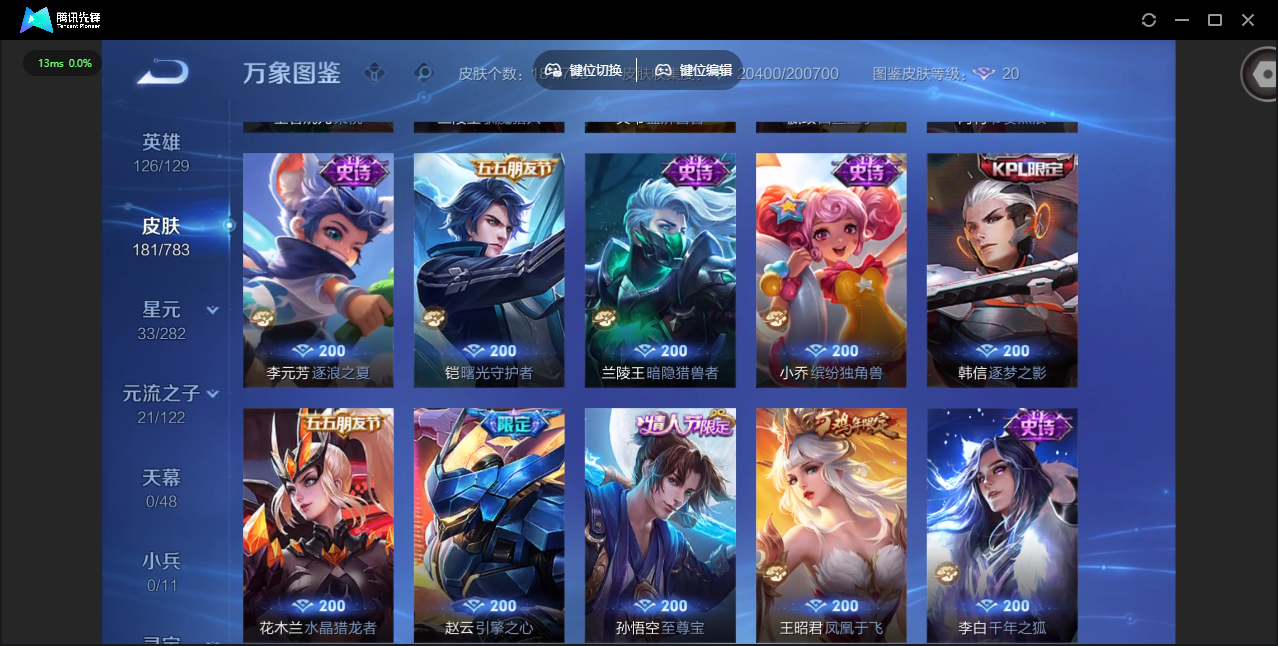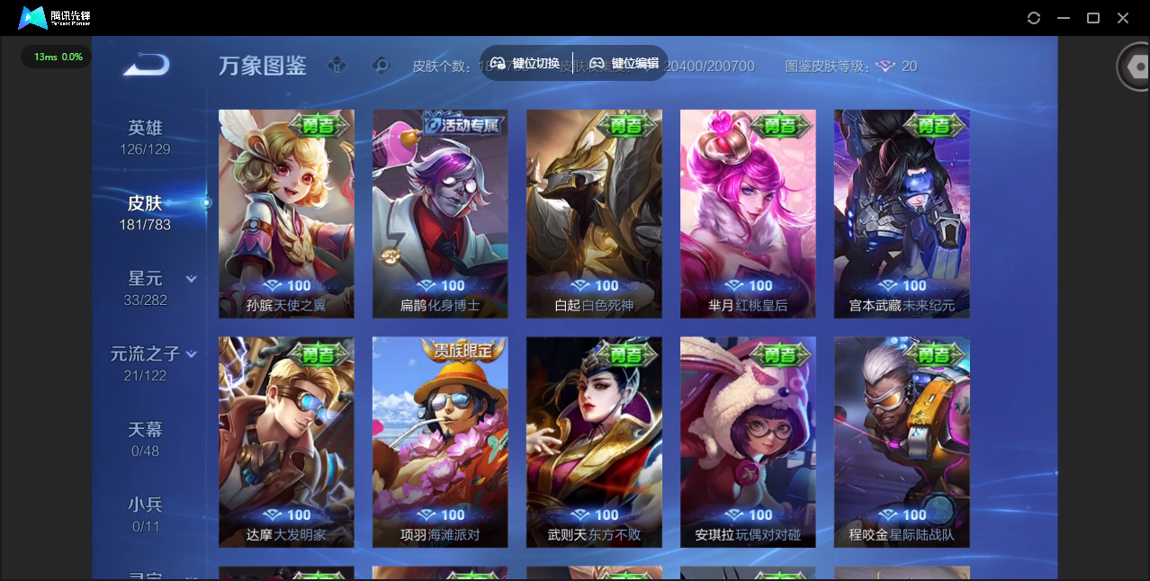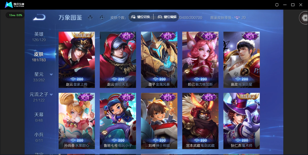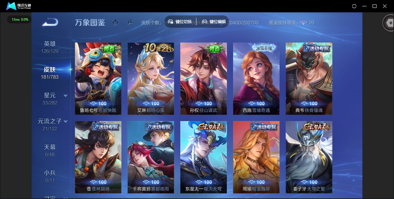PX_2504126-安卓QQ/荣耀黄金/181皮肤/126英雄/0典藏/0珍品无双/0无双/0珍品传说/4传说/37史诗/7稀有英雄