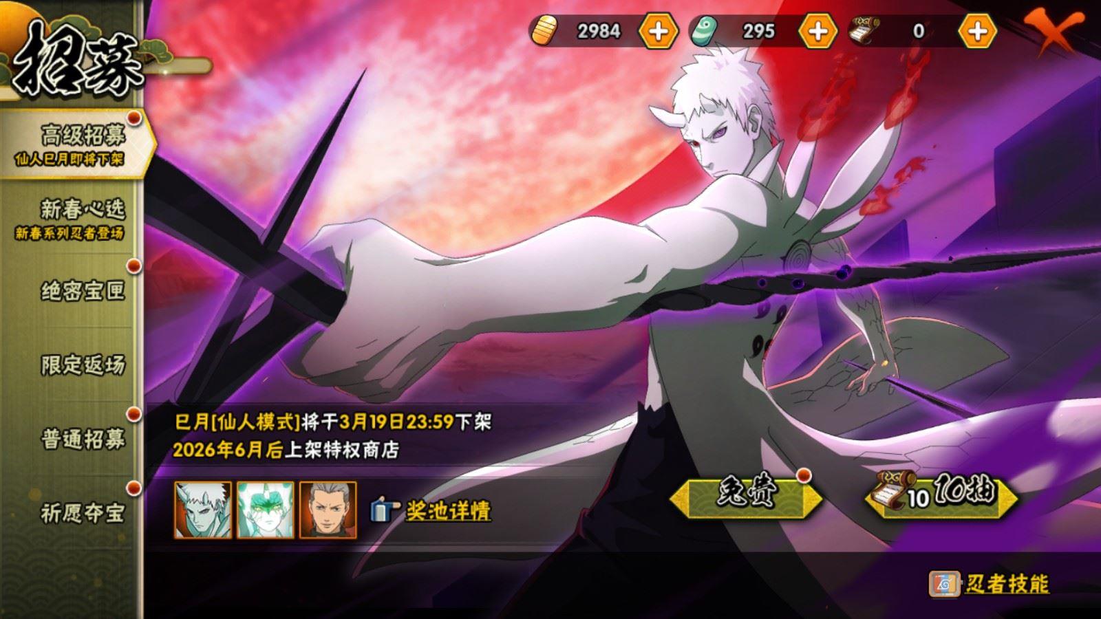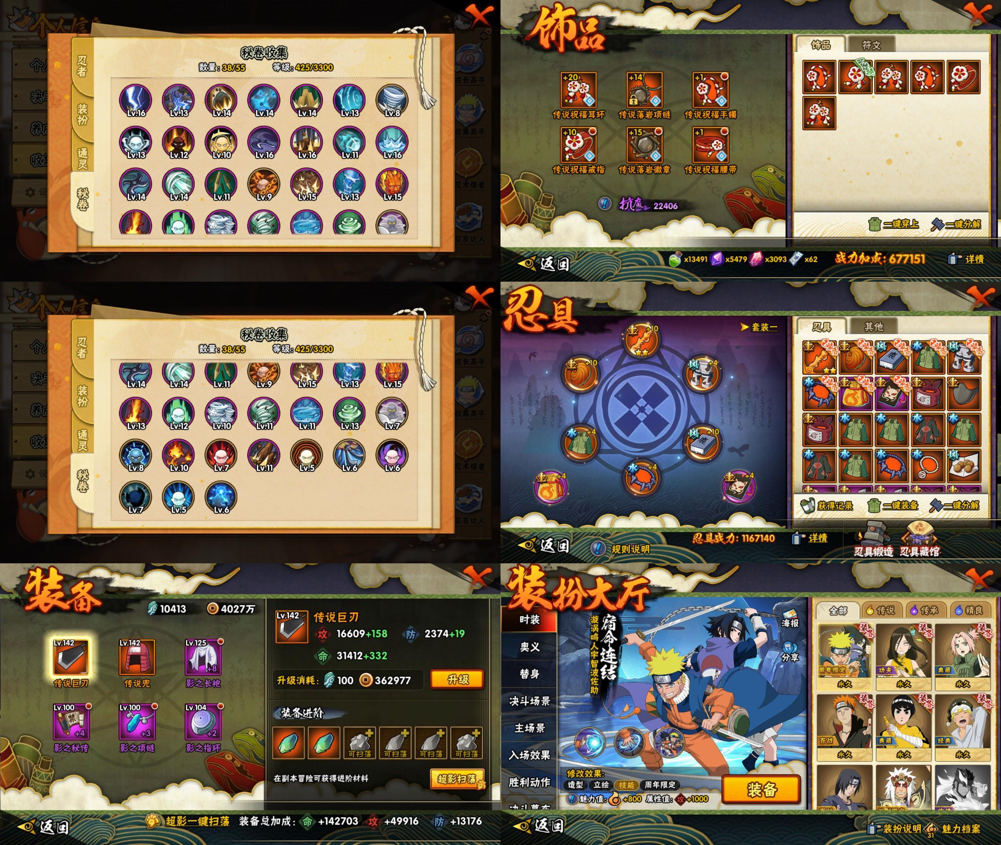 【A忍者】,小南「神驹佑将」,纲手「妖怪奇谭」,巳月「仙人模式」,迈特凯「青春爆炸」,不缘,旗木卡卡西「幻之真容」,李洛克「忍界大战」,蝎「绯流琥」,宇智波泉奈,桃地再不斩「秽土转生」,角都「秽土转生」,波风水门「青年」,宇智波佐助「须佐能乎」,漩涡鸣人「九尾查克拉」,秋道丁次「忍界大战」,春野樱「百豪」,飞段「死司凭血」,飞段,迪达拉,我爱罗「疾风传」,蝎,干柿鬼鲛,猿飞阿斯玛,迈特凯,桃地再不斩,