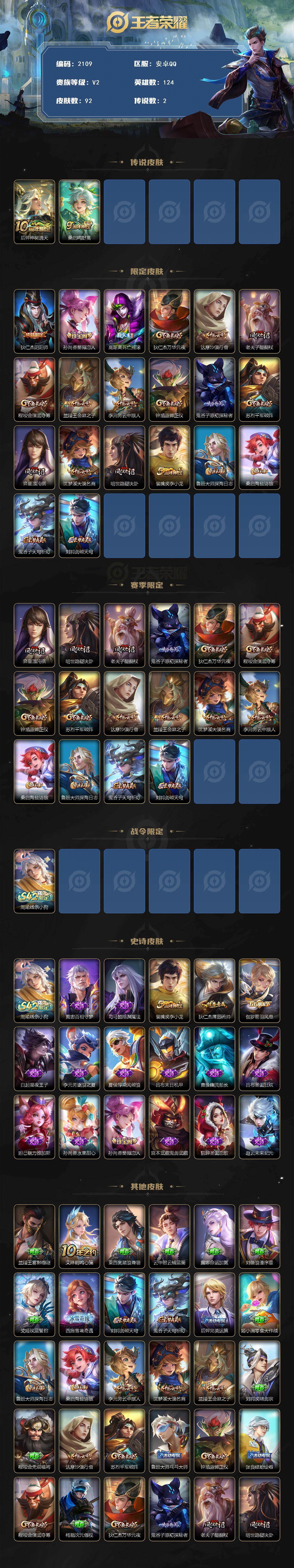 PX_2489835-Q-V2-永恒钻石I段位-打野19段,对抗路13段,124英雄-92皮肤-2传说-17史诗
