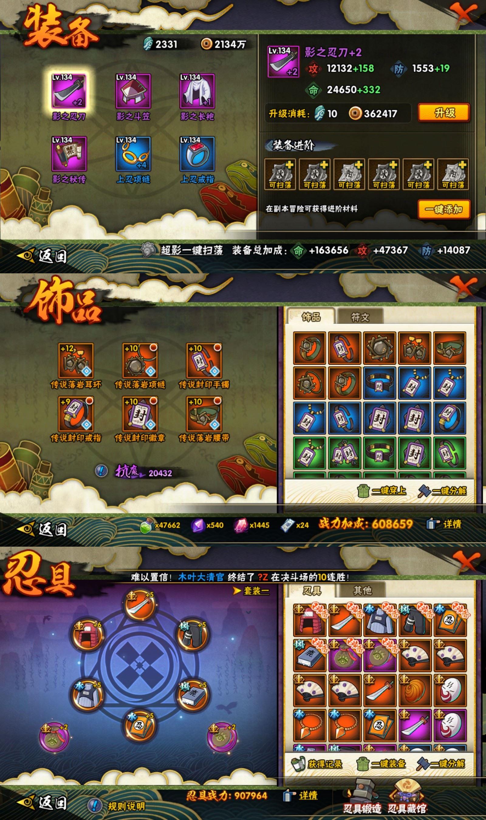 【A忍者】,机械鸣人「初始形态」,迈特凯「青春爆炸」,漩涡博人「桃式显现」,宇智波鼬「夏日限定」,宇智波泉奈,宇智波佐助「须佐能乎」,春野樱「百豪」,猿飞日斩「火影继承人」,角都「地怨虞」,飞段「死司凭血」,角都,干柿鬼鲛,迈特凯,