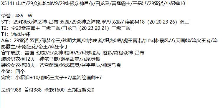 X5141 电信/29众神乾坤V9/29终极众神吕布/白龙马/雷霆霸主/三悬浮/29雷诺/小貂蝉+10
