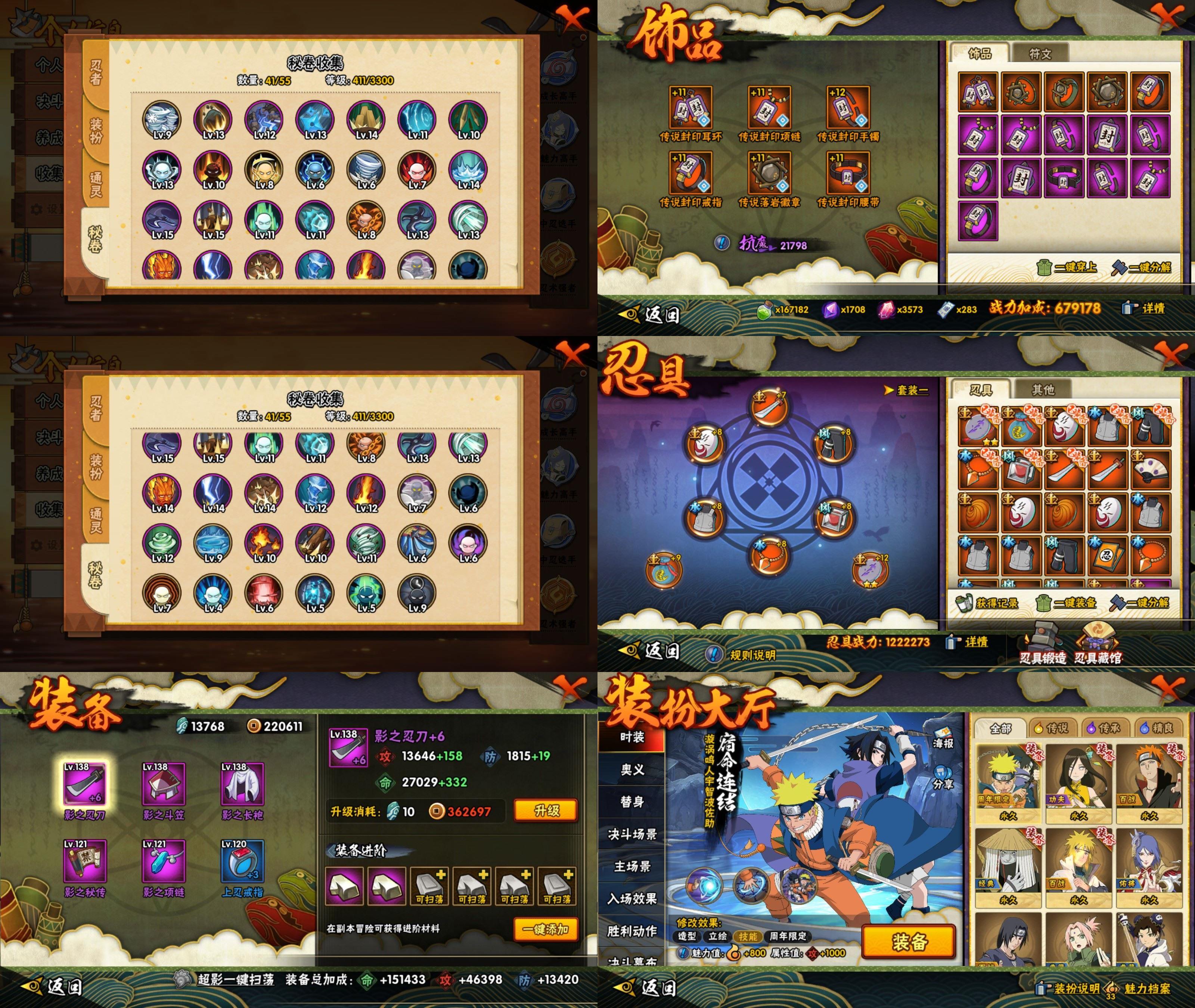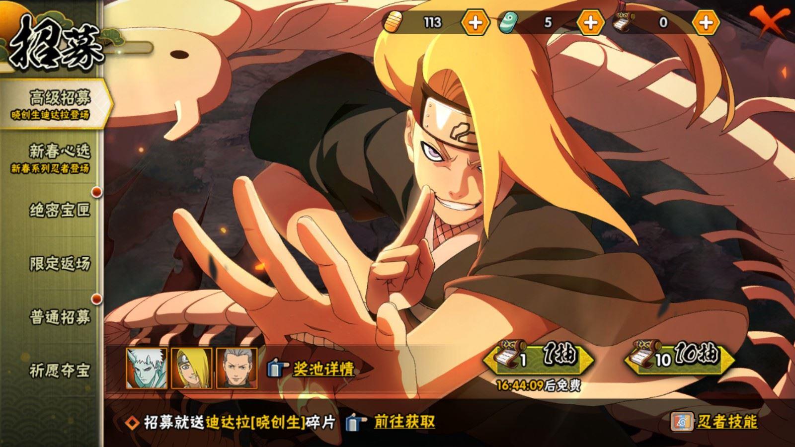 【A忍者】,小南「神驹佑将」,旗木卡卡西「神威对决」,机械鸣人「初始形态」,巳月「仙人模式」,迈特凯「青春爆炸」,不缘,漩涡博人「桃式显现」,日向雏田「最终章」,旗木卡卡西「幻之真容」,蝎「绯流琥」,宇智波泉奈,神农「羁绊」,桃地再不斩「秽土转生」,长门「青年」,艾「青年」,波风水门「青年」,黑土「四代目土影」,飞段「恶灵之影」,宇智波佐助「须佐能乎」,千代「近松十人卫」,秋道丁次「忍界大战」,飞段「死司凭血」,飞段,我爱罗「疾风传」,蝎,干柿鬼鲛,宇智波鼬,猿飞阿斯玛,迈特凯,卑留呼「火之意志继承者」,