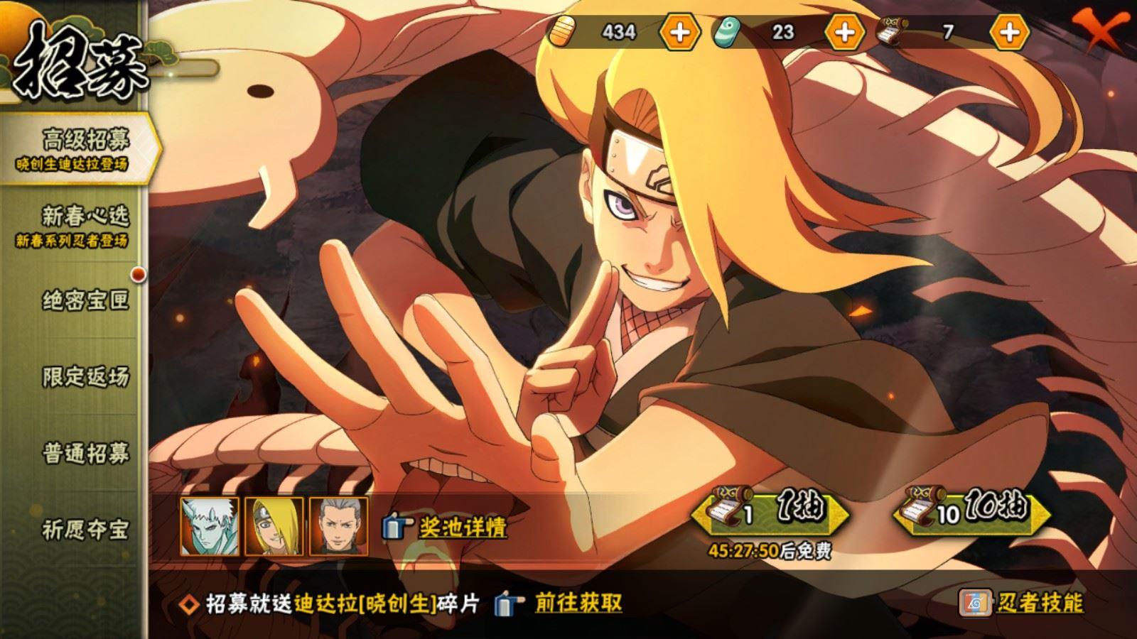 【A忍者】,小南「神驹佑将」,旗木卡卡西「神威对决」,机械鸣人「初始形态」,大野木「侠隐江湖」,迈特凯「青春爆炸」,长十郎「六代目水影」,日向宁次「忍界大战」,漩涡博人「桃式显现」,宇智波鼬「夏日限定」,旗木卡卡西「幻之真容」,宇智波泉奈,神农「羁绊」,桃地再不斩「秽土转生」,宇智波止水,长门「青年」,艾「青年」,达鲁伊「五代目雷影」,波风水门「青年」,宇智波佐助「须佐能乎」,漩涡鸣人「九尾查克拉」,千代「近松十人卫」,药师兜「半蛇斗篷」,宇智波佐助「疾风传咒印」,秋道丁次「忍界大战」,大蛇丸「晓」,春野樱「百豪」,照美冥「五代目水影」,奇拉比,漩涡鸣人「仙人模式」,飞段「死司凭血」,飞段,我爱罗「疾风传」,蝎,干柿鬼鲛,宇智波鼬,猿飞阿斯玛,迈特凯,