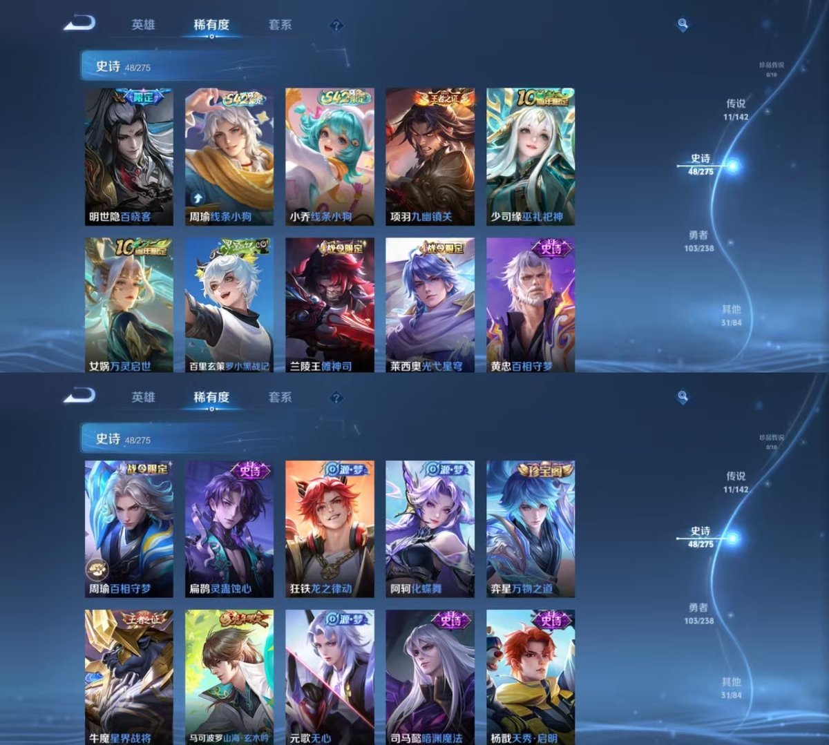 W10022【安卓区V8】可二次实名,英雄104,皮肤161,典藏:李白鸣剑.曳