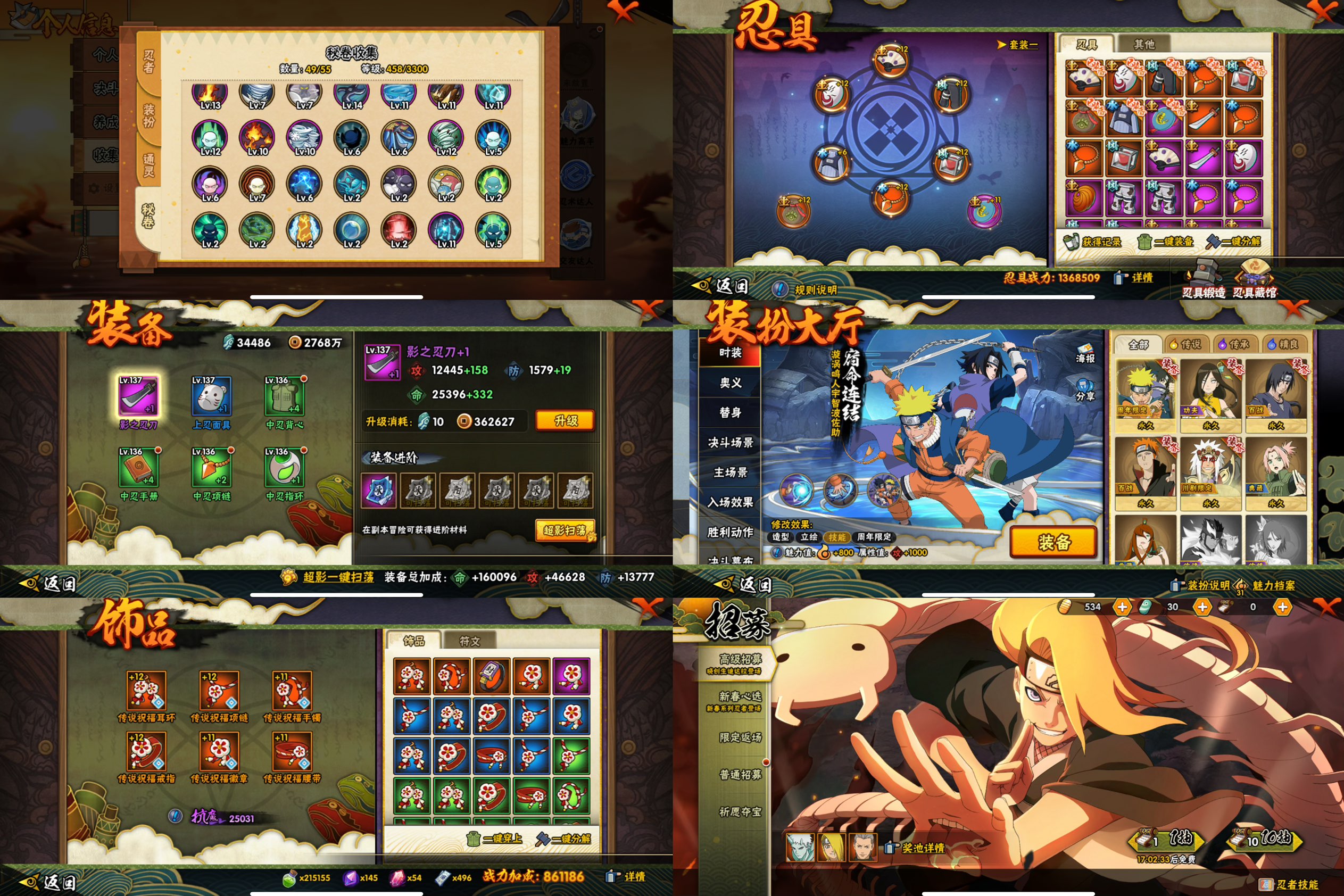 【A忍者】,宇智波带土「漂泊浪客」,机械鸣人「初始形态」,巳月「仙人模式」,迈特凯「青春爆炸」,漩涡博人「桃式显现」,旗木卡卡西「幻之真容」,李洛克「忍界大战」,蝎「绯流琥」,宇智波泉奈,神农「羁绊」,桃地再不斩「秽土转生」,角都「秽土转生」,宇智波止水「新春限定」,飞段「恶灵之影」,宇智波佐助「须佐能乎」,千代「近松十人卫」,秋道丁次「忍界大战」,大蛇丸「晓」,飞段「死司凭血」,飞段,迪达拉,我爱罗「疾风传」,蝎,干柿鬼鲛,宇智波鼬,猿飞阿斯玛,迈特凯,